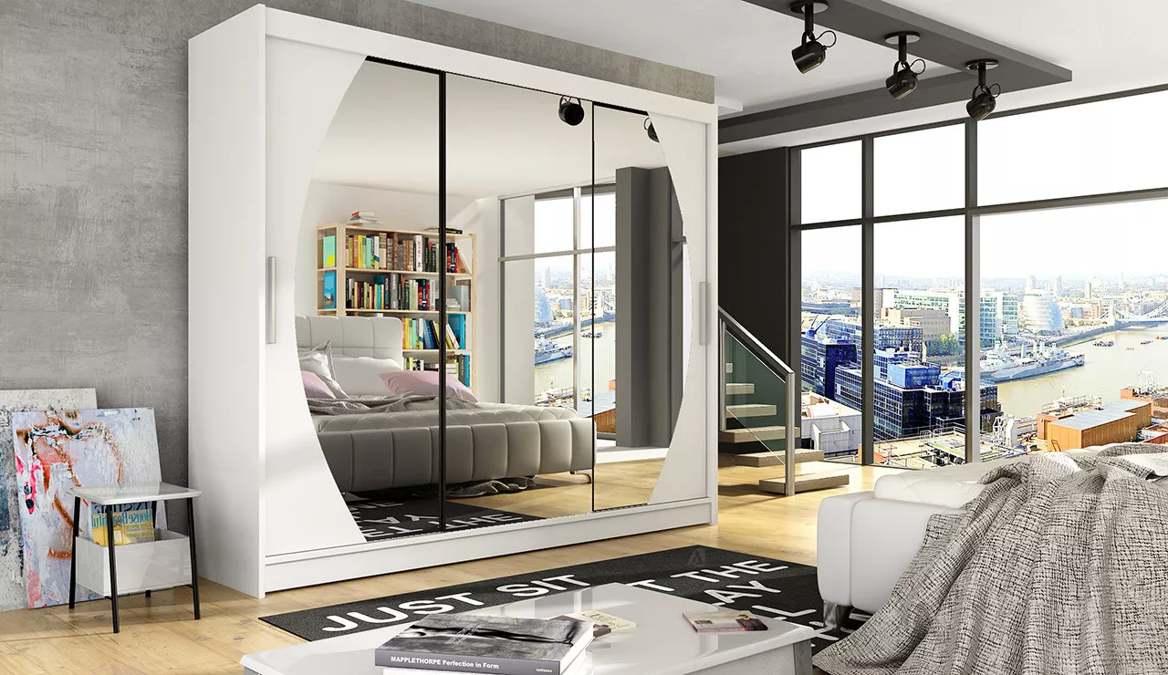 Prostorná šatní skříň se zrcadlem Jumbo - šířka 250 cm, bílá