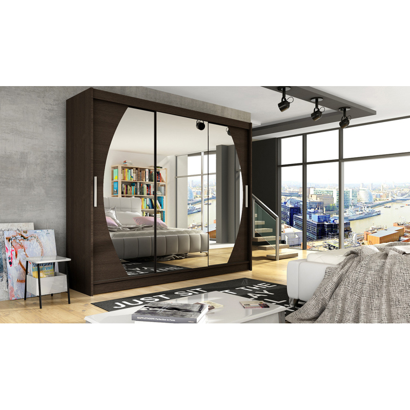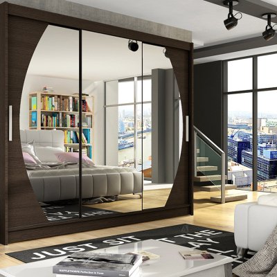 Prostorná šatní skříň se zrcadlem Jumbo - šířka 250 cm, čoko