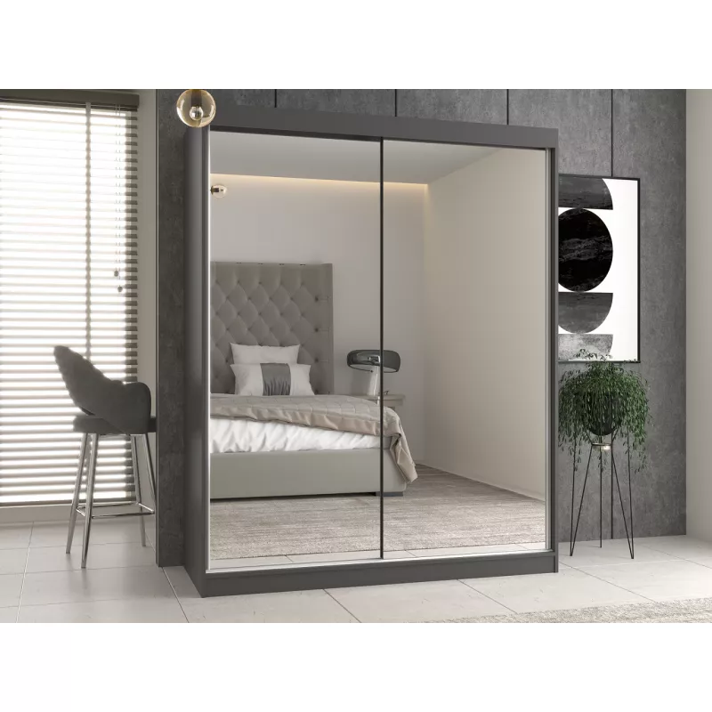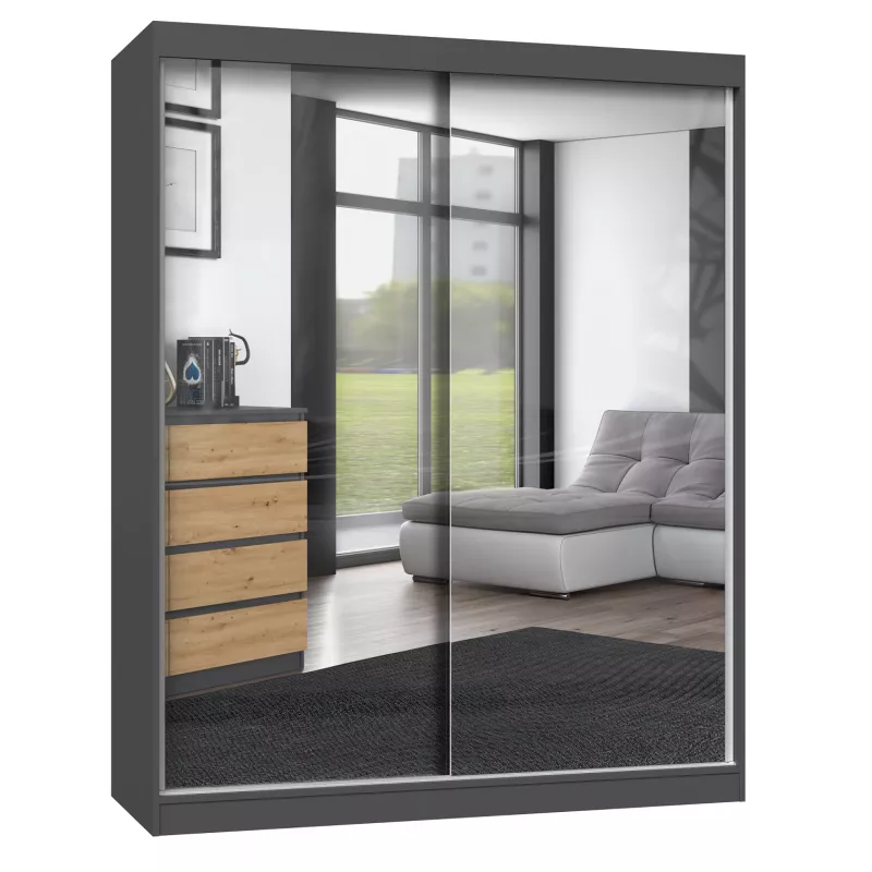 Šatní skříň 160 cm se zrcadlem RANNO 6 - dub artisan / antracitová