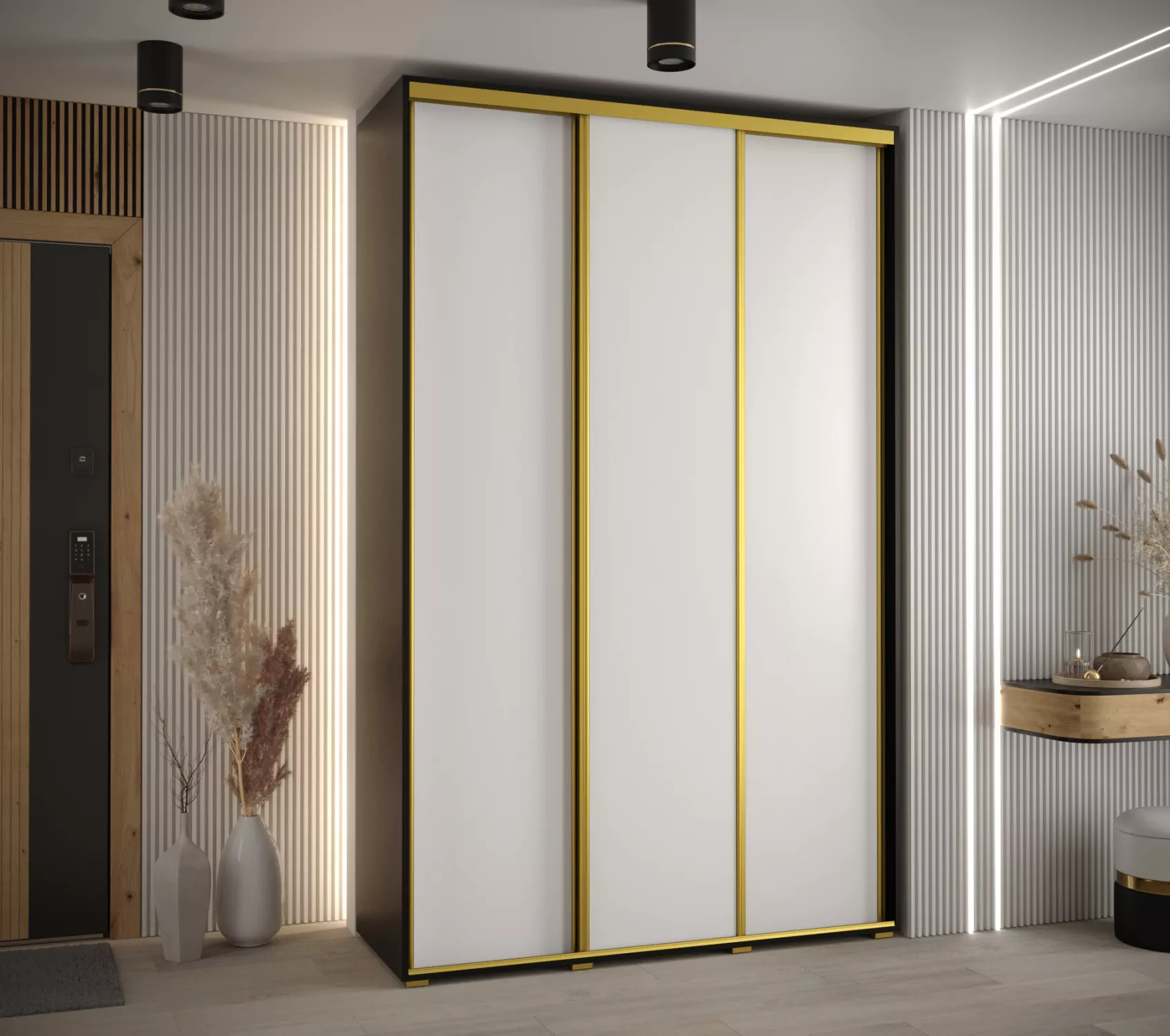 Šatní skříň ASIRI 1 - 150/45 cm, černá / bílá / zlatá