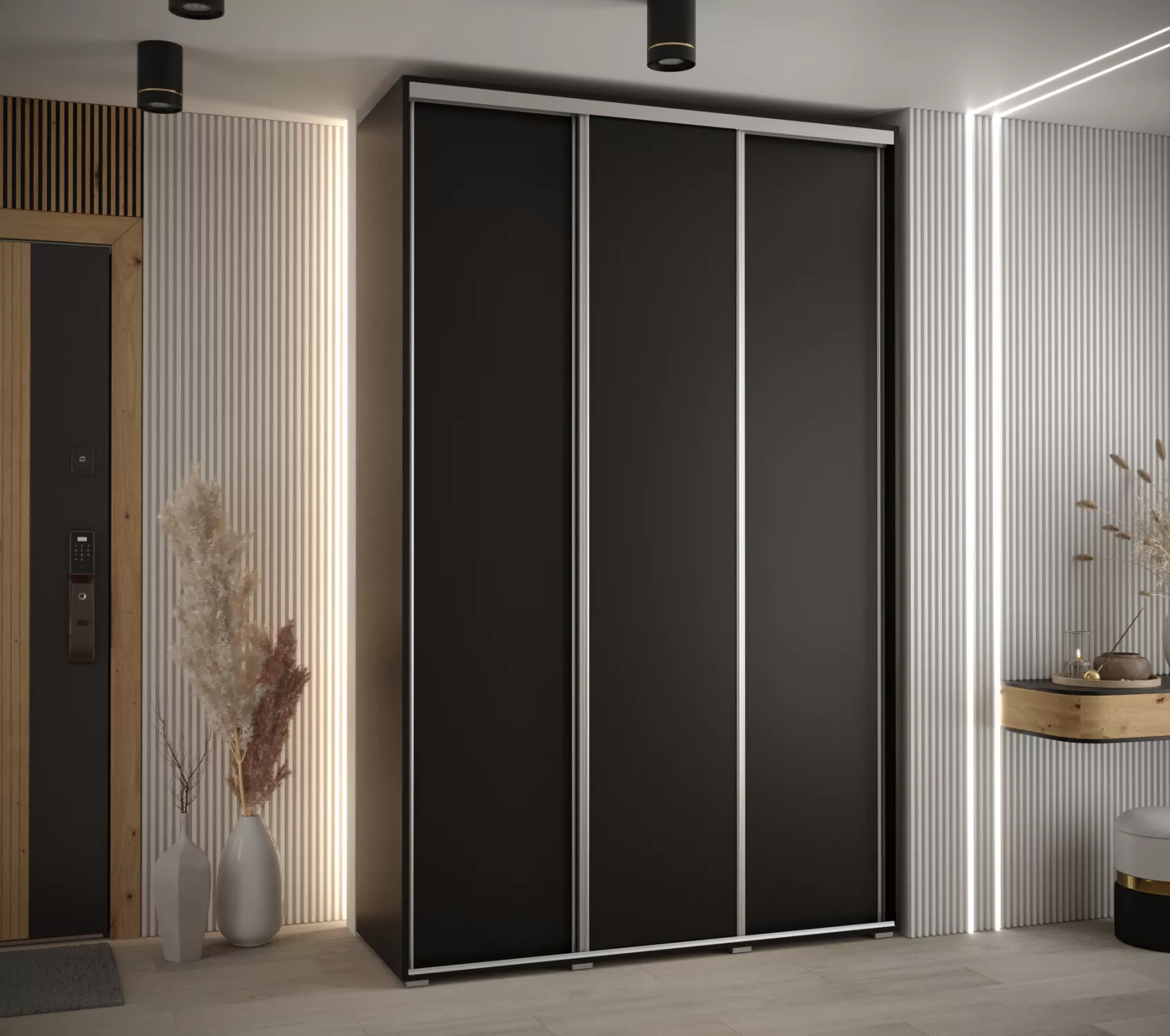 Šatní skříň ASIRI 1 - 150/45 cm, černá / stříbrná