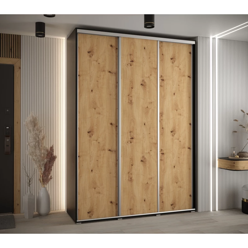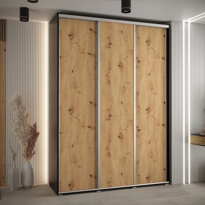 Šatní skříň ASIRI 1 - 170/45 cm, černá / dub artisan / stříbrná