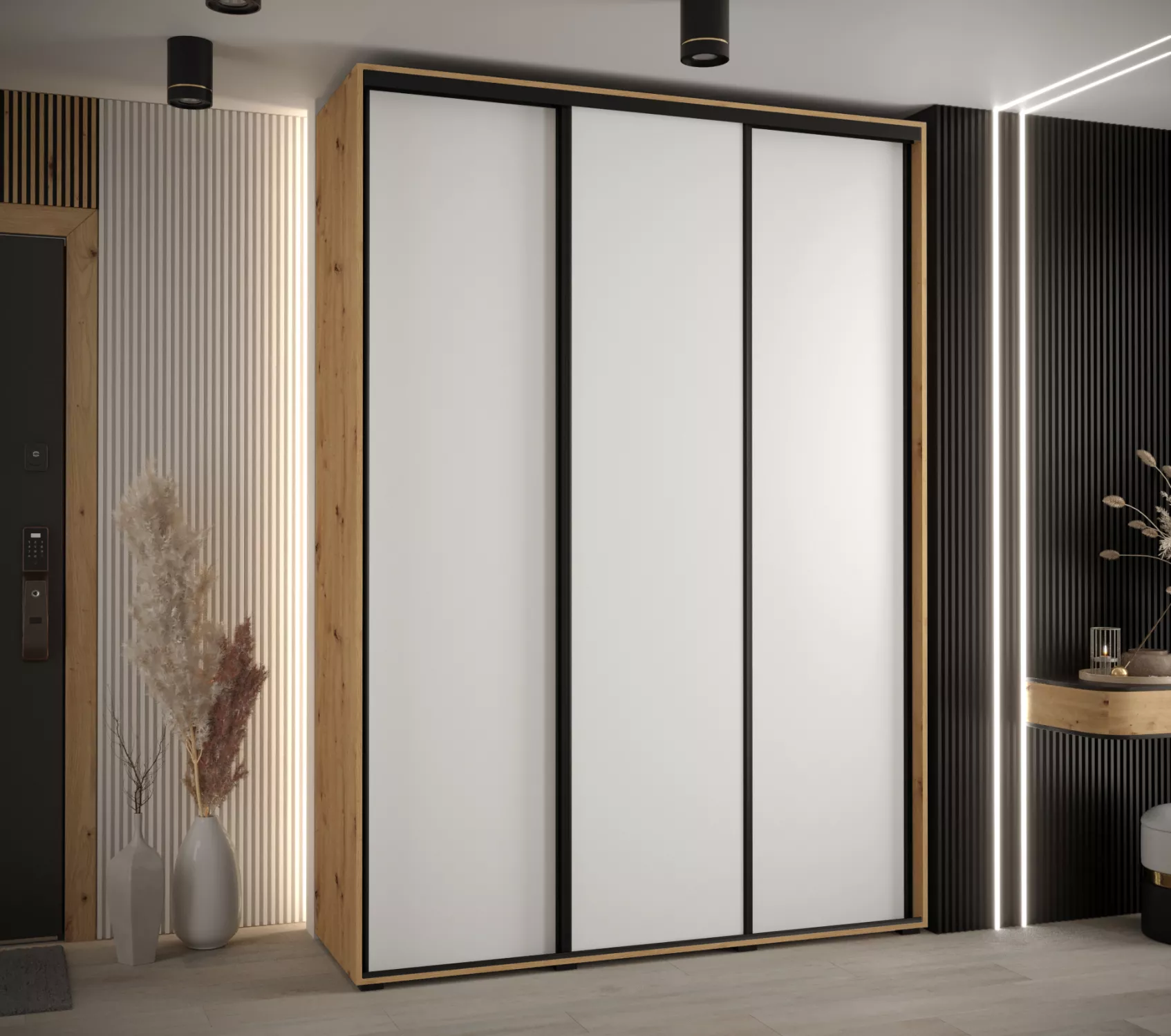Šatní skříň ASIRI 1 - 170/45 cm, dub artisan / bílá / černá