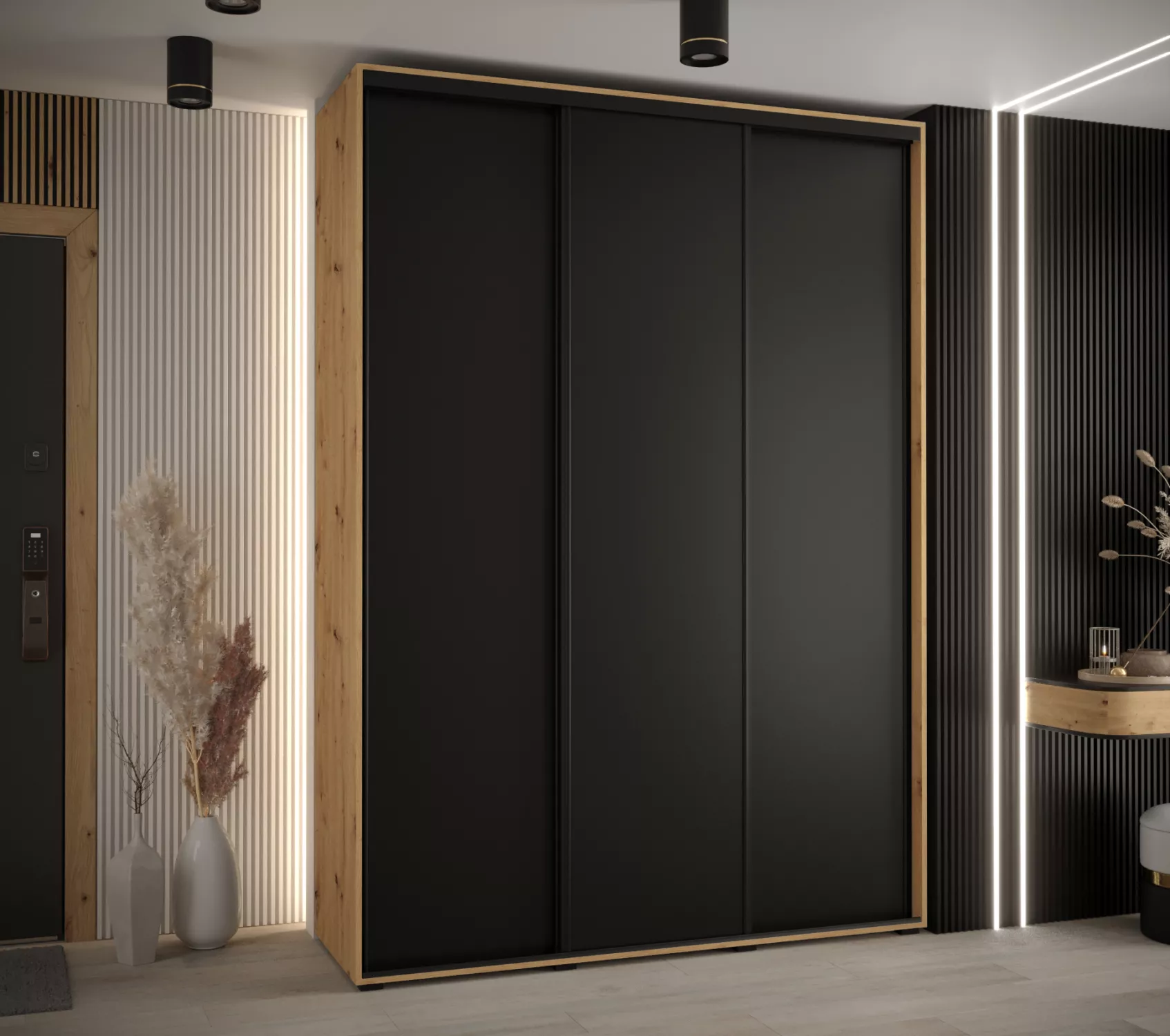 Šatní skříň ASIRI 1 - 180/45 cm, dub artisan / černá / černá