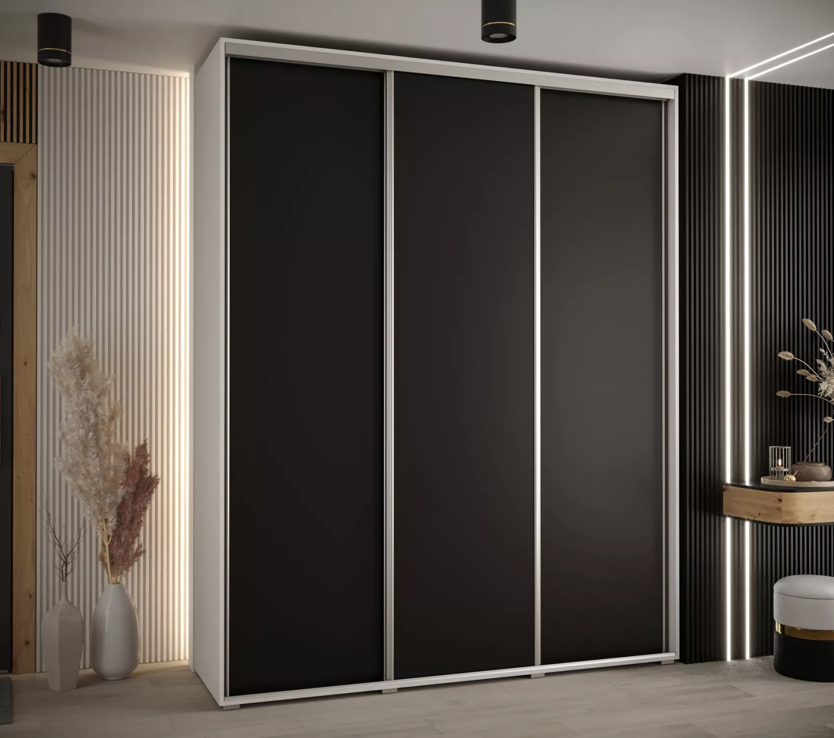 Šatní skříň ASIRI 1 - 190/45 cm, bílá / černá / stříbrná