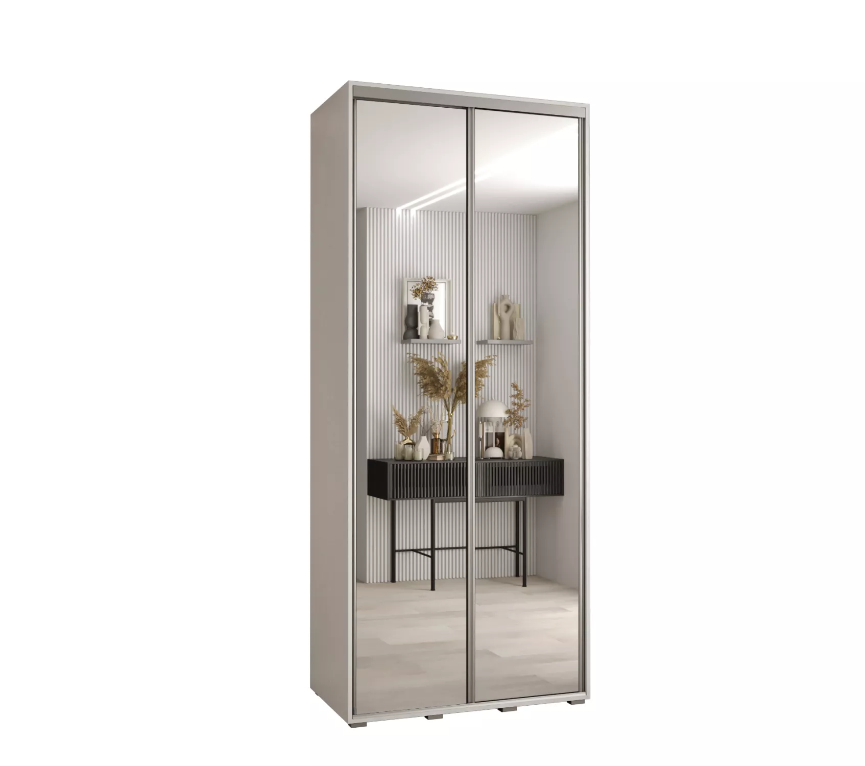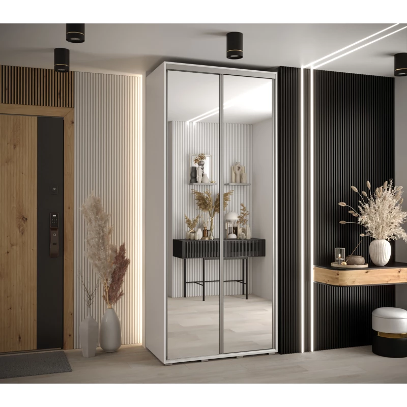 Šatní skříň ASIRI zaujme svým moderním designem a praktickými prvky. Šatní skříň má posuvné dveře, které se neotvírají do prostoru a ušetří tak spoustu místa.