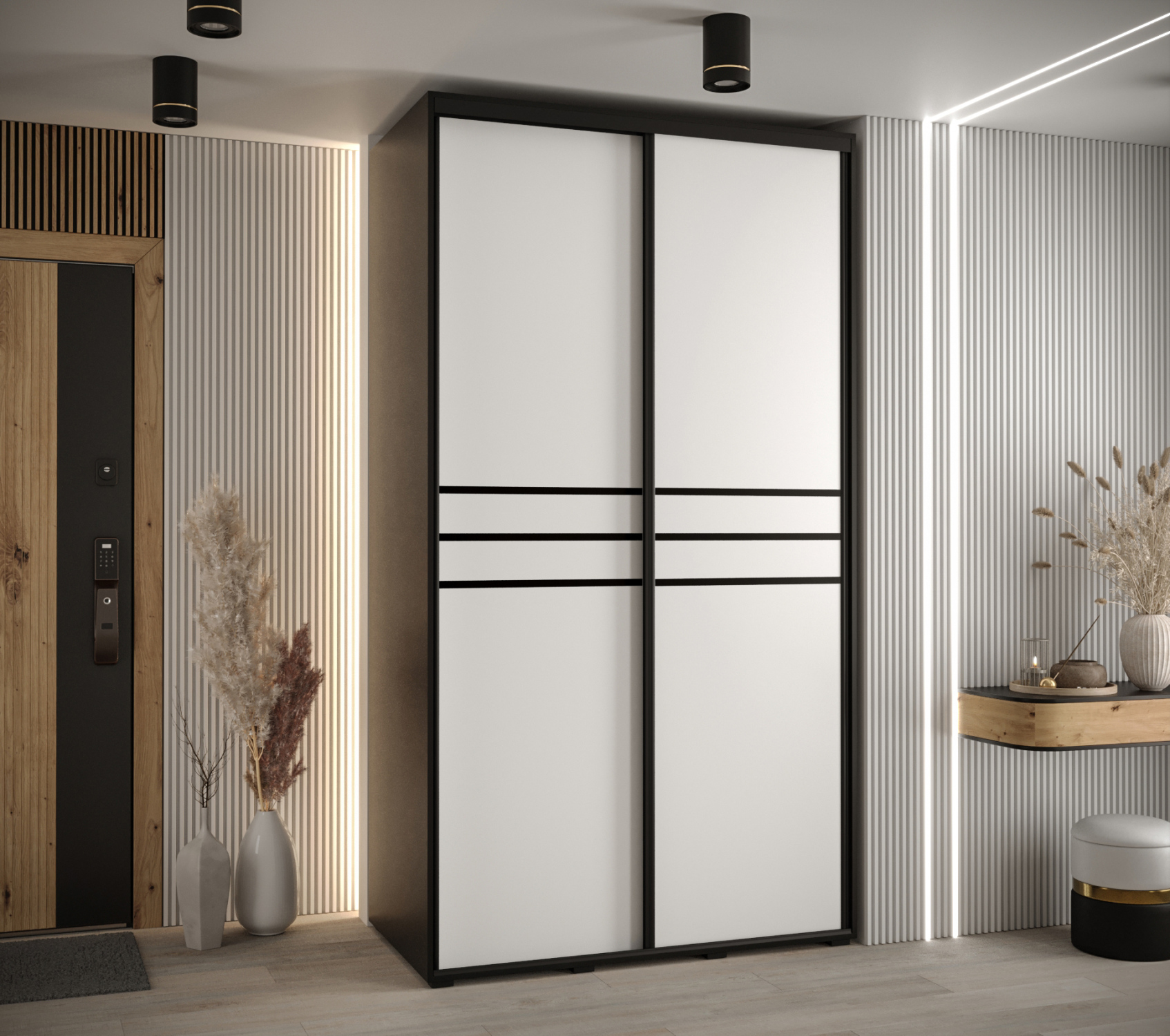Šatní skříň ASIRI zaujme svým moderním designem a praktickými prvky. Šatní skříň má posuvné dveře, které se neotvírají do prostoru a ušetří tak spoustu místa.