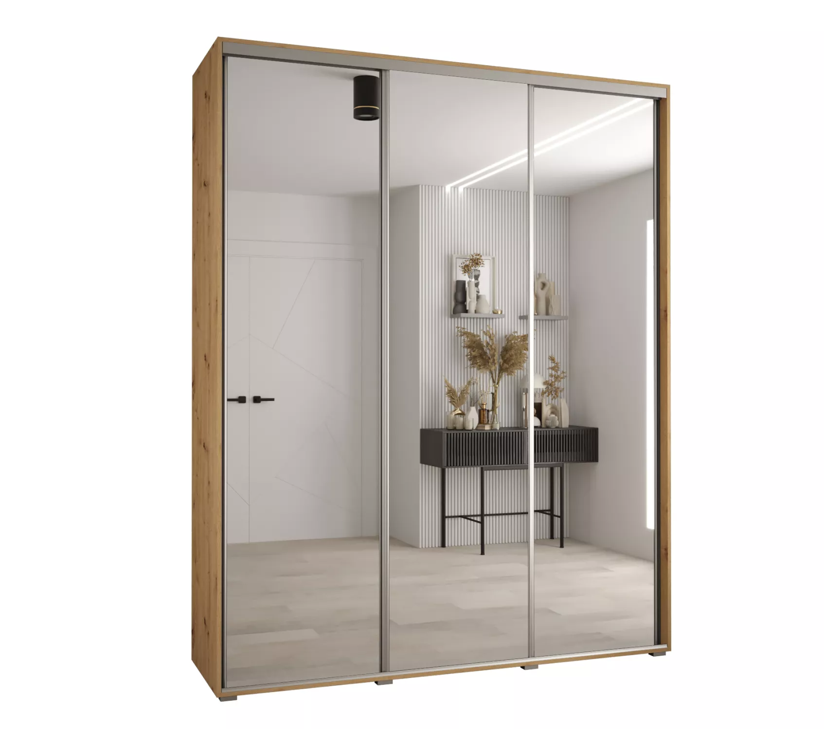 Šatní skříň ASIRI zaujme svým moderním designem a praktickými prvky. Šatní skříň má posuvné dveře, které se neotvírají do prostoru a ušetří tak spoustu místa.