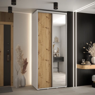 Šatní skříň ASIRI 3 - 120/45 cm, bílá / dub artisan / stříbrná