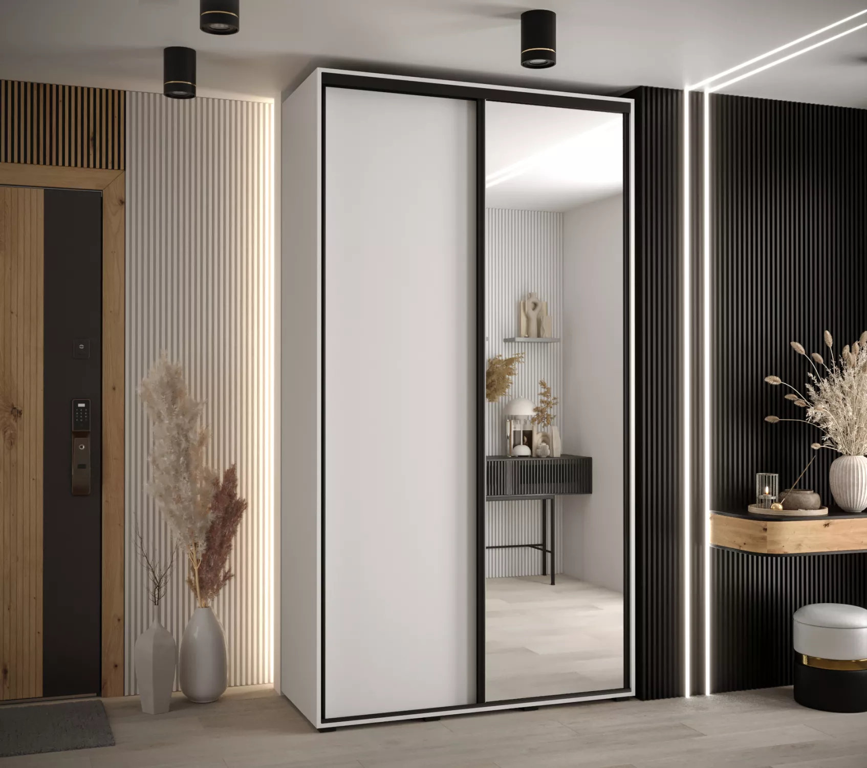 Šatní skříň ASIRI zaujme svým moderním designem a praktickými prvky. Šatní skříň má posuvné dveře, které se neotvírají do prostoru a ušetří tak spoustu místa.
