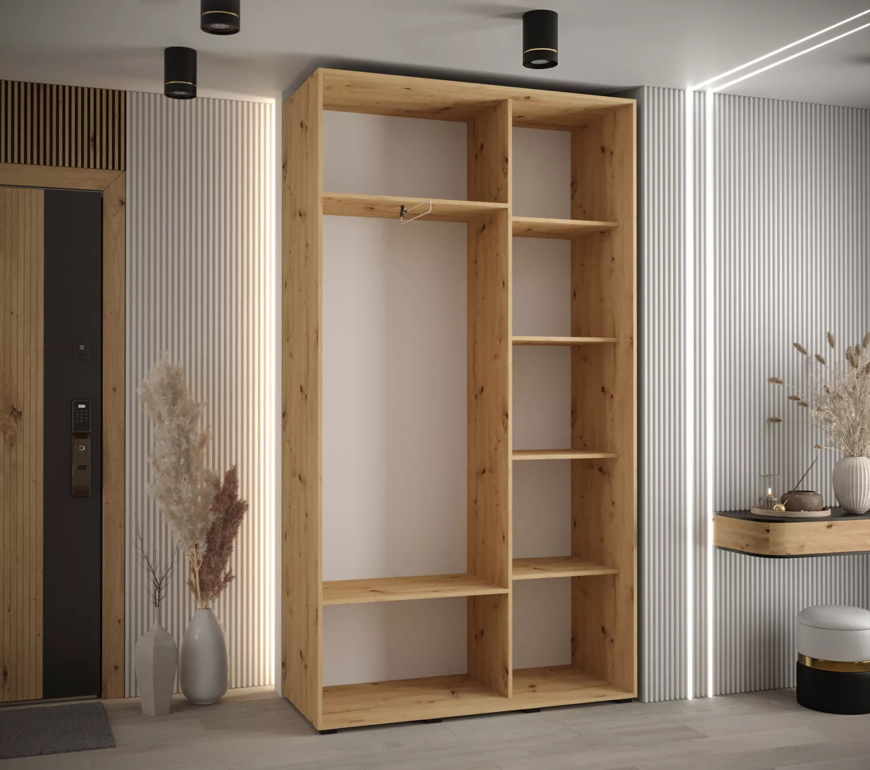 Šatní skříň ASIRI zaujme svým moderním designem a praktickými prvky. Šatní skříň má posuvné dveře, které se neotvírají do prostoru a ušetří tak spoustu místa.