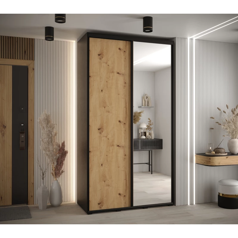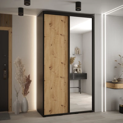 Šatní skříň ASIRI 3 - 140/45 cm, černá / dub artisan / černá