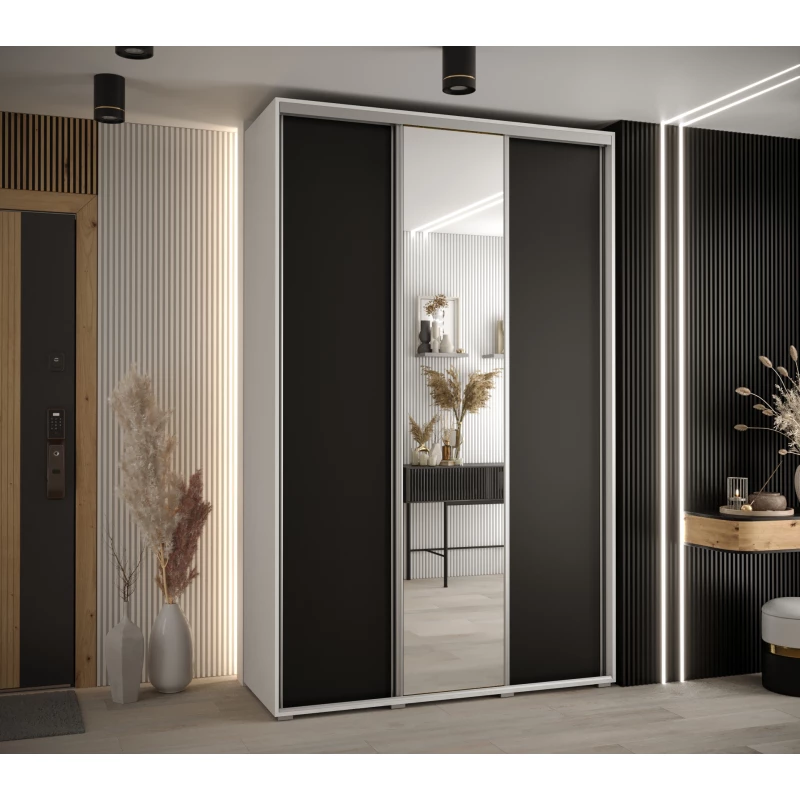 Šatní skříň ASIRI 3 - 150/45 cm, bílá / černá / stříbrná