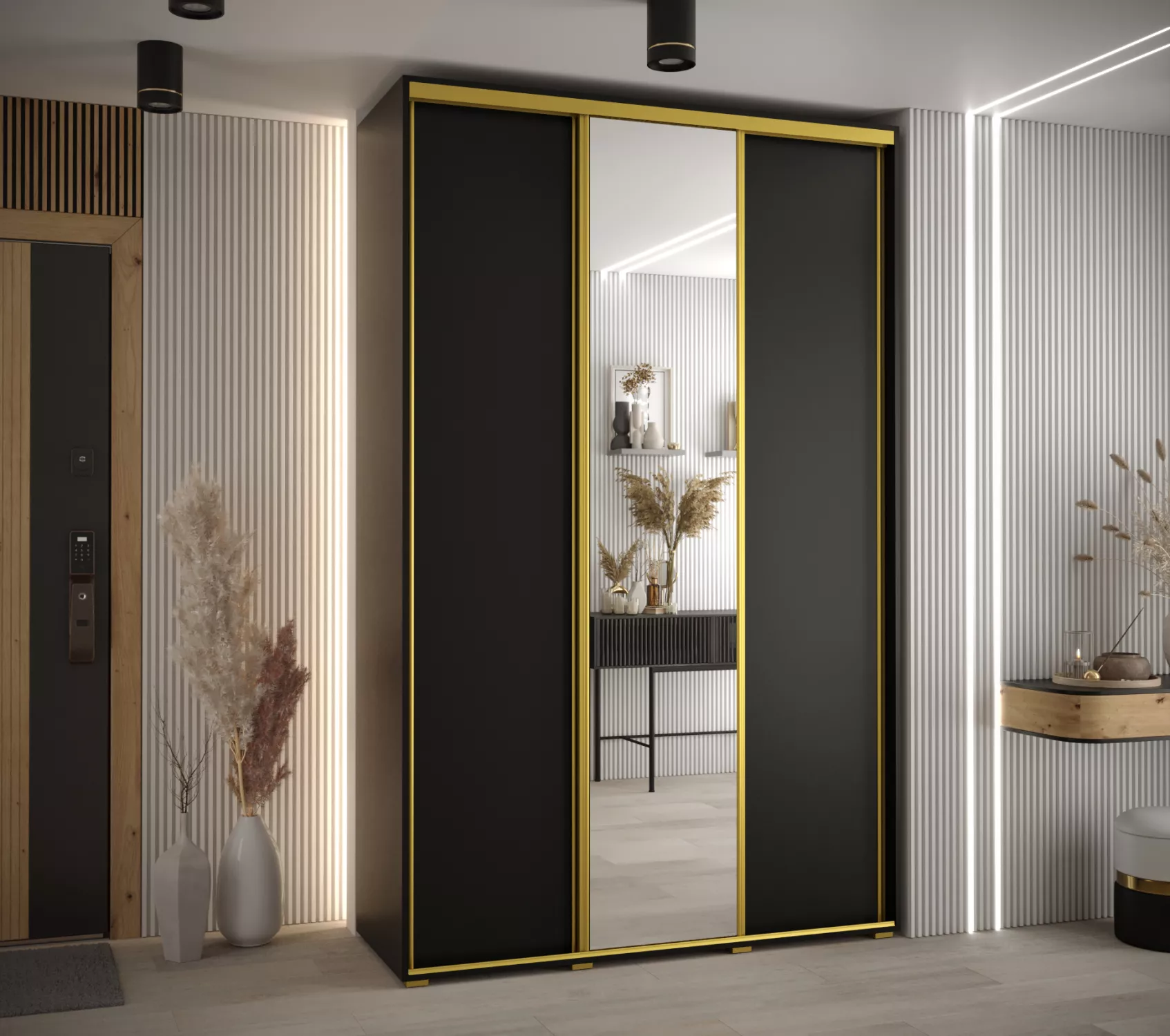Šatní skříň ASIRI 3 - 150/45 cm, černá / zlatá