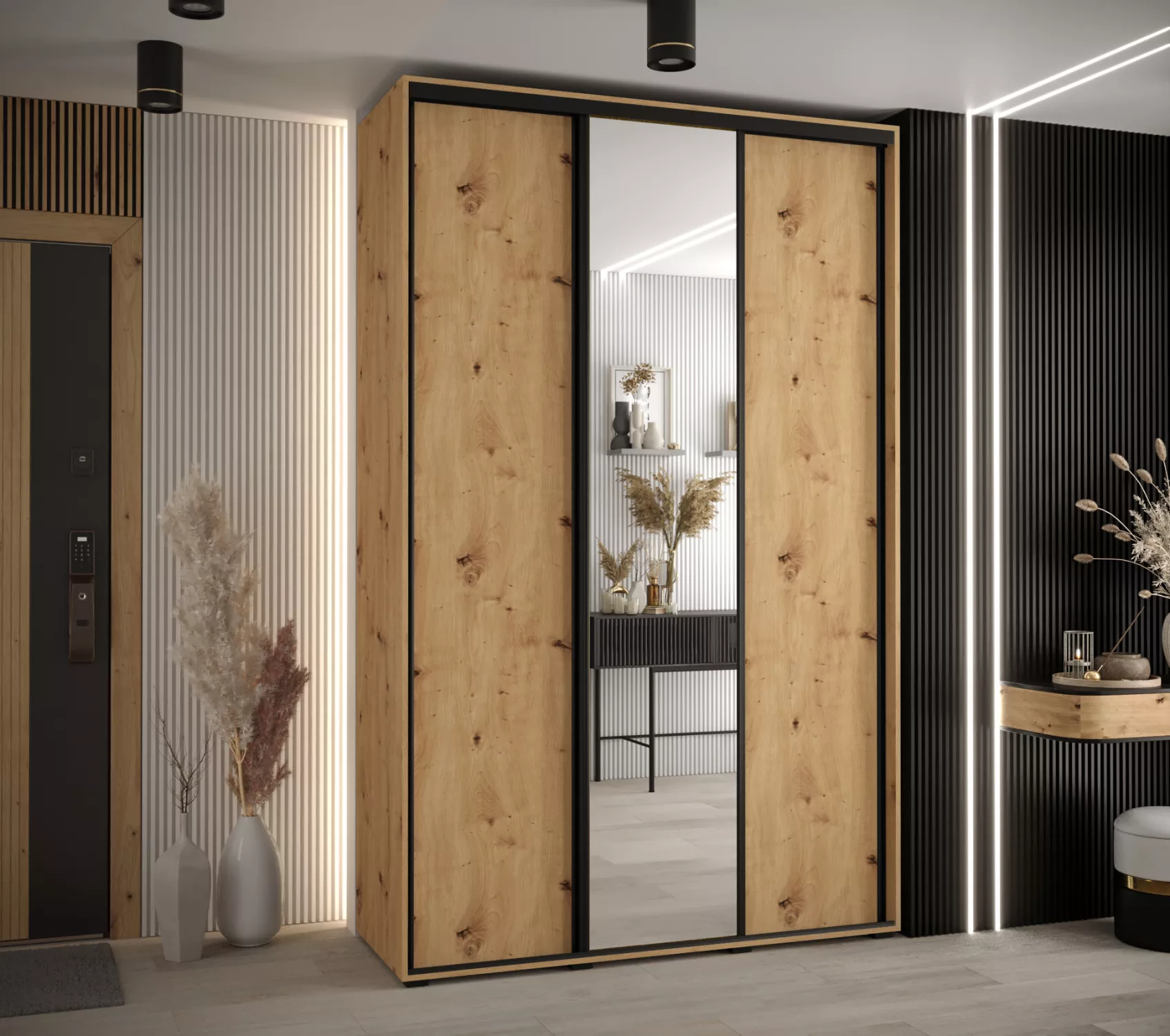 Šatní skříň ASIRI 3 - 150/45 cm, dub artisan / černá