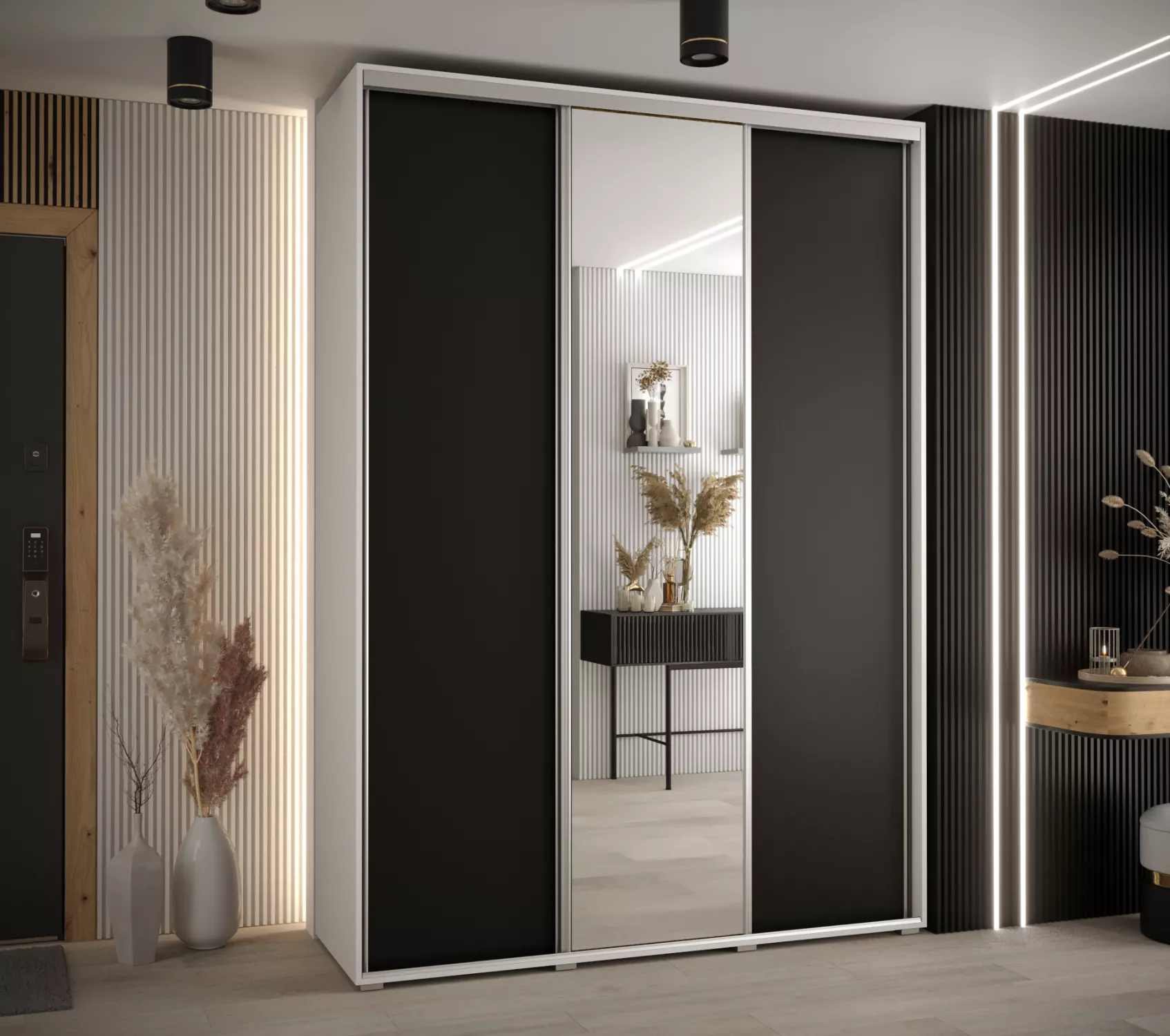 Šatní skříň ASIRI 3 - 170/45 cm, bílá / černá / stříbrná