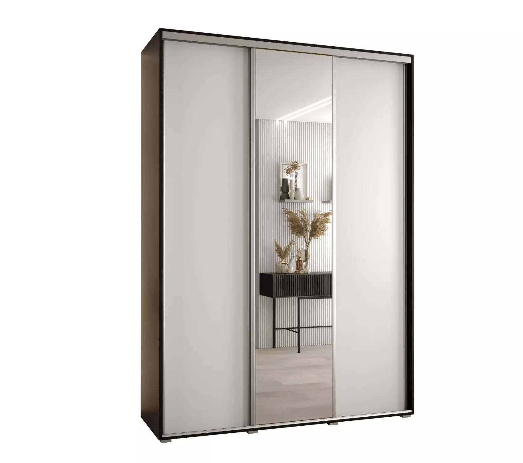 Šatní skříň ASIRI 3 - 170/45 cm, černá / bílá / stříbrná