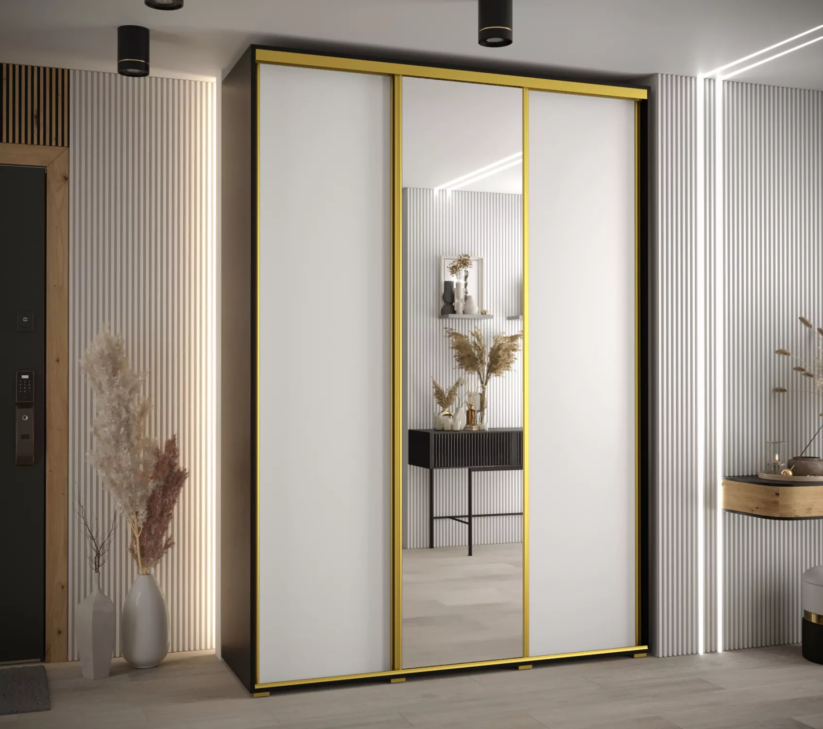 Šatní skříň ASIRI 3 - 170/45 cm, černá / bílá / zlatá