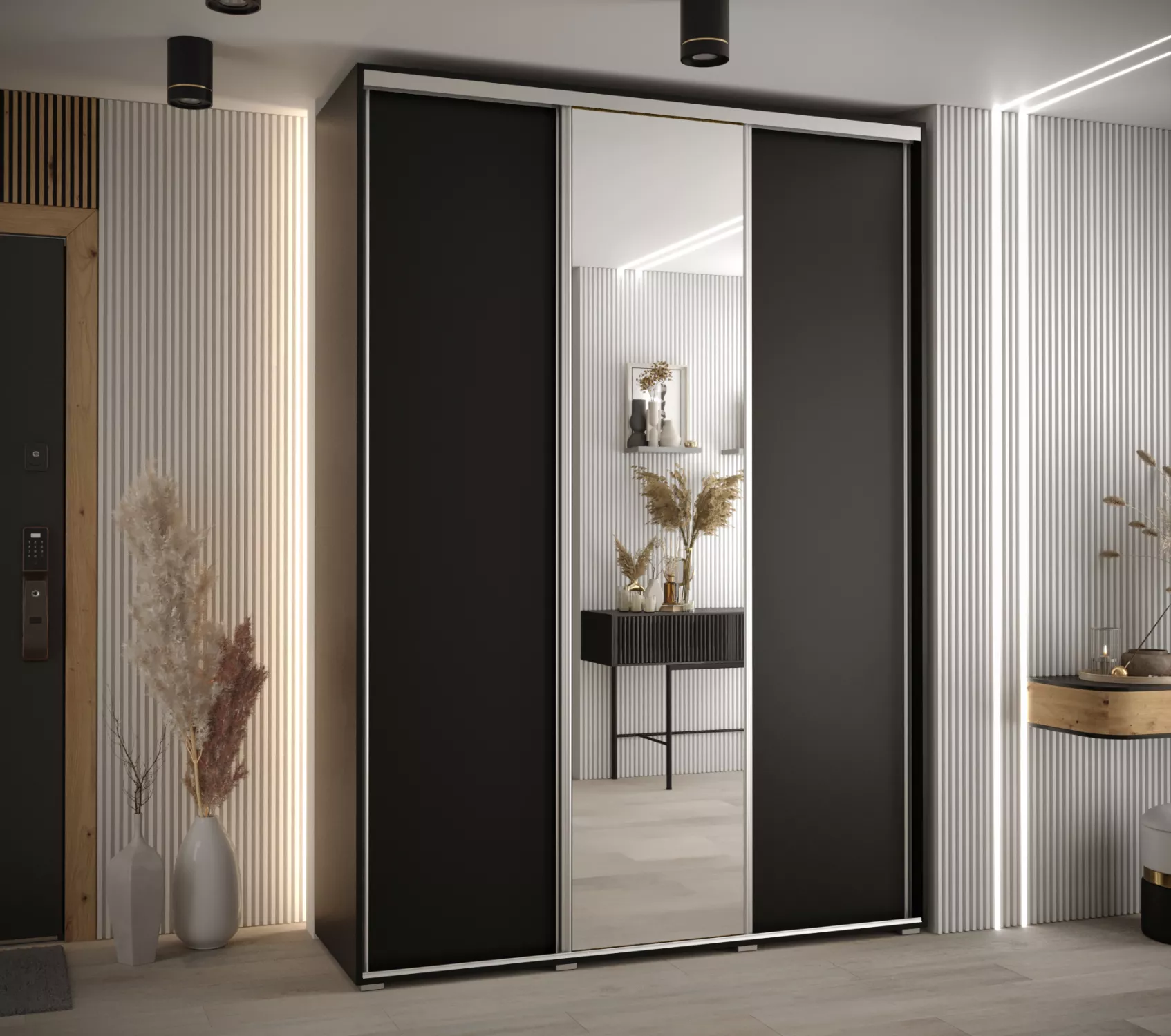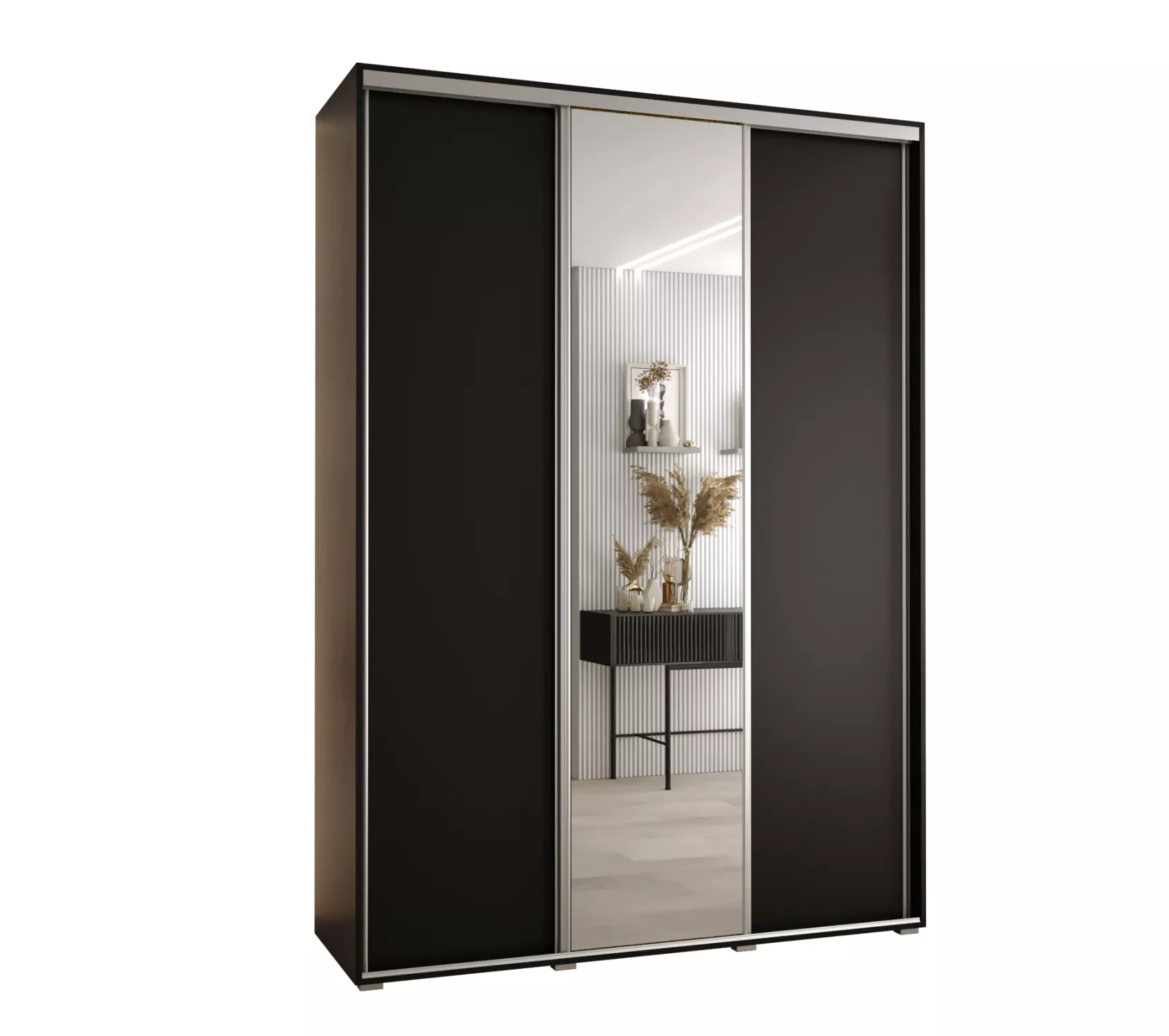 Šatní skříň ASIRI 3 - 170/45 cm, černá / stříbrná