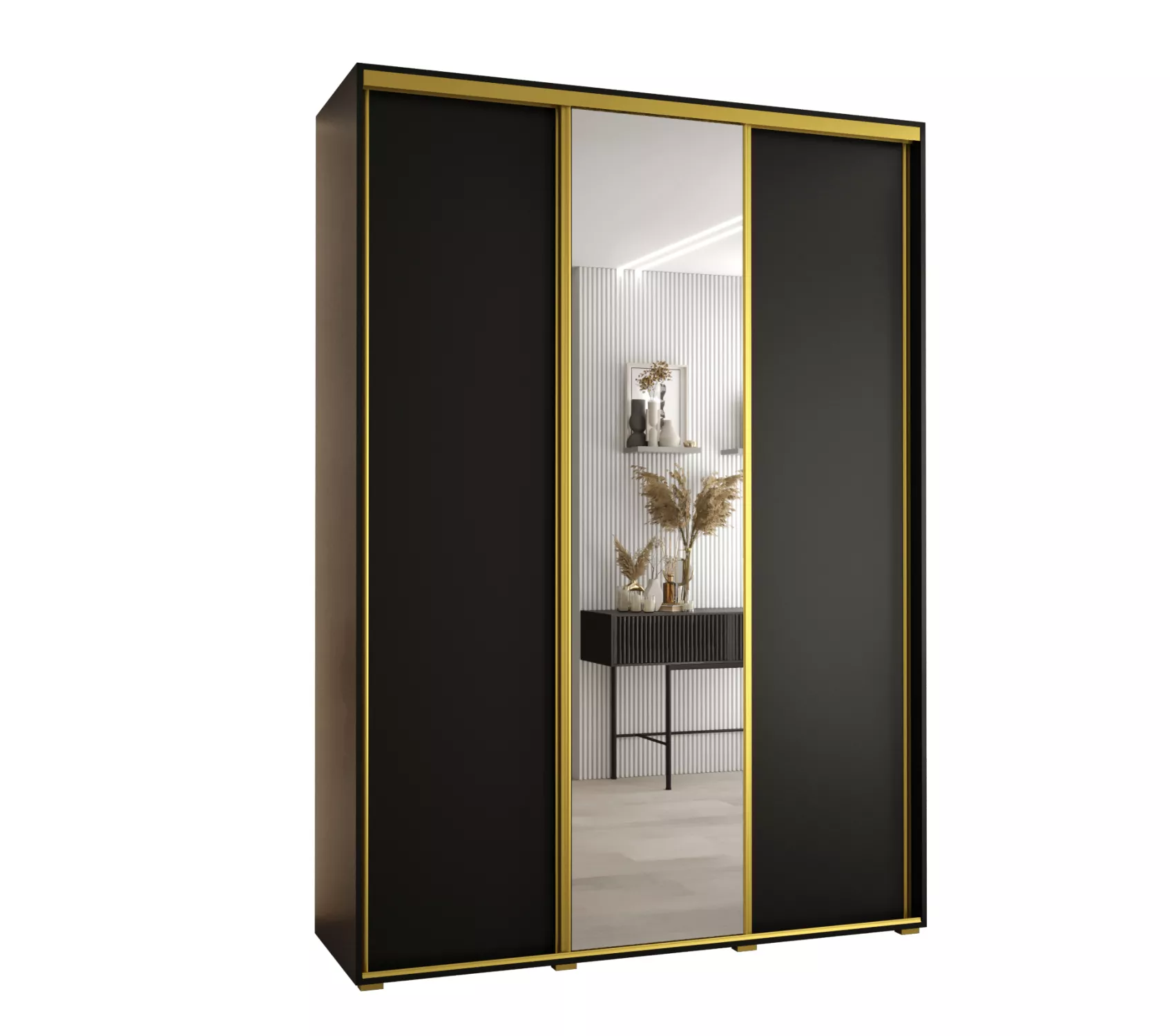 Šatní skříň ASIRI 3 - 180/45 cm, černá / zlatá