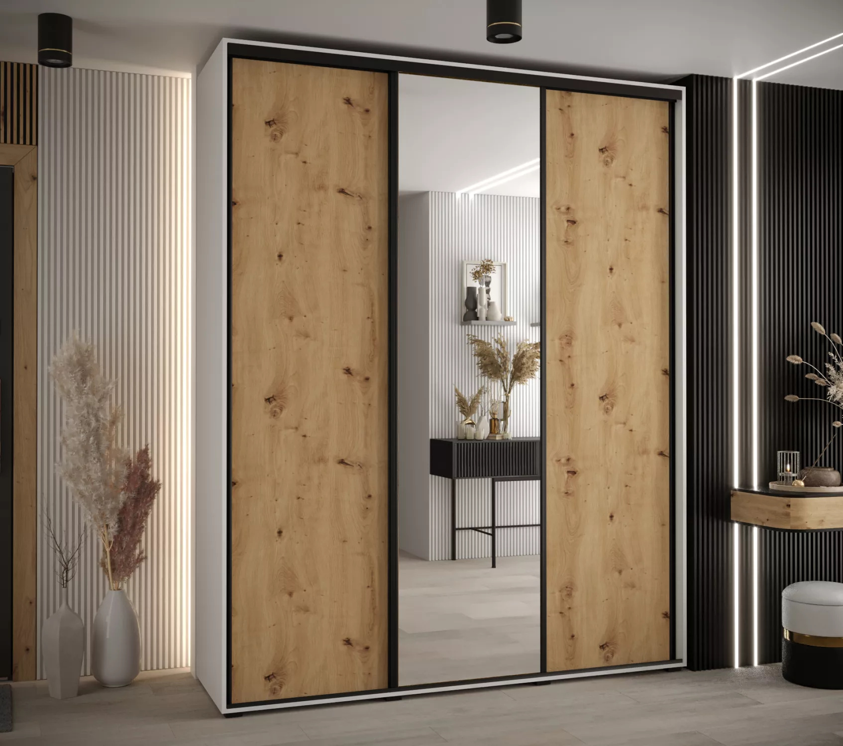 Šatní skříň ASIRI 3 - 190/45 cm, bílá / dub artisan / černá