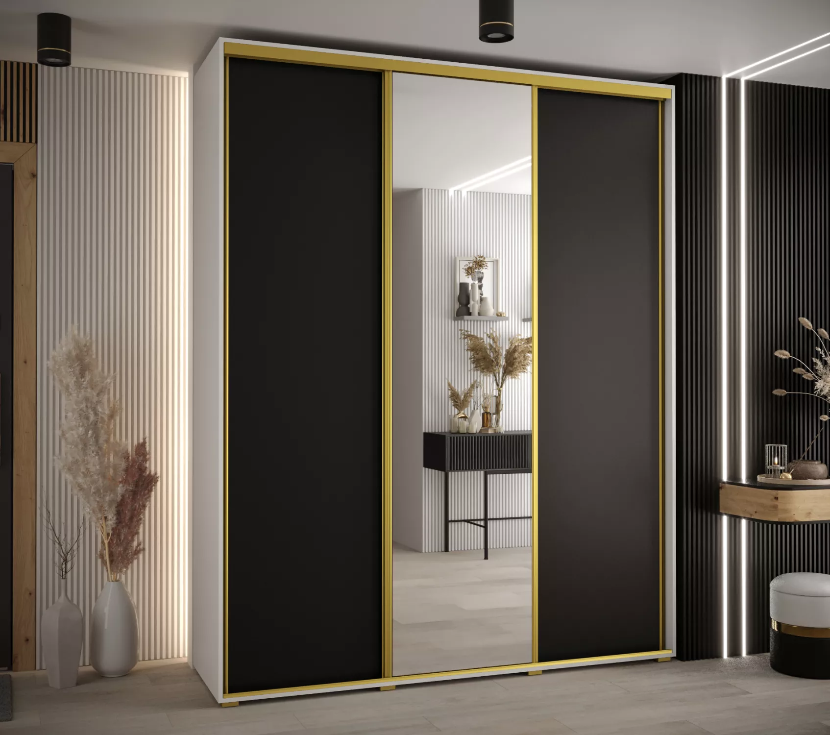 Šatní skříň ASIRI 3 - 190/45 cm, bílá / černá / zlatá