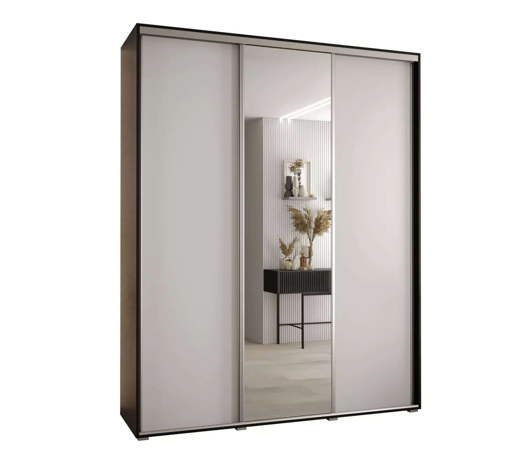 Šatní skříň ASIRI 3 - 200/45 cm, černá / bílá / stříbrná