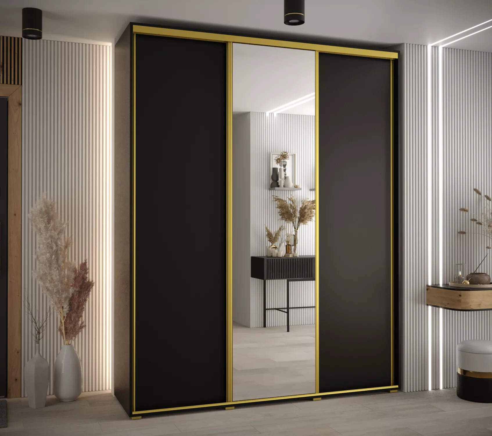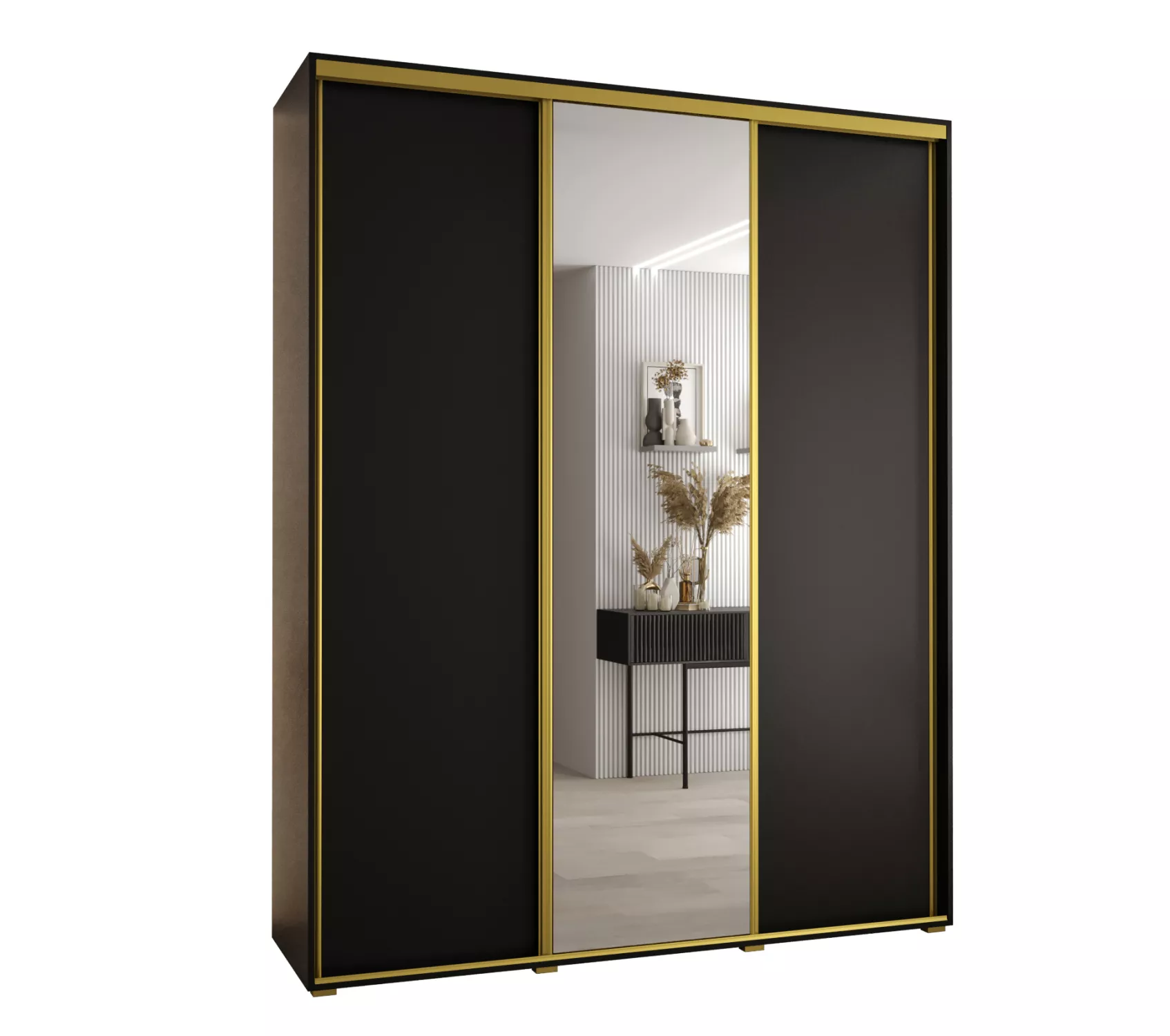 Šatní skříň ASIRI 3 - 200/45 cm, černá / zlatá