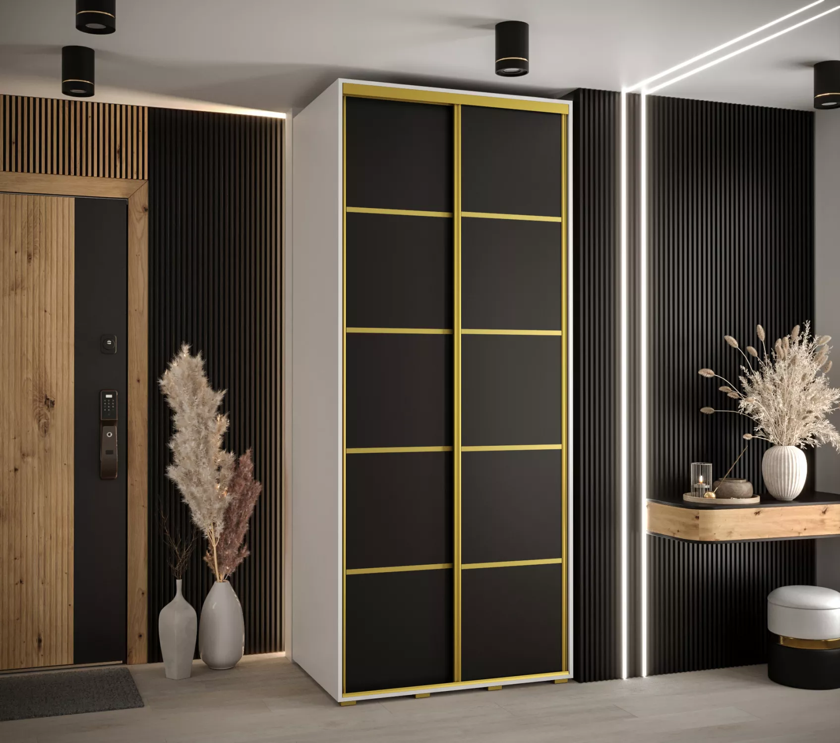 Šatní skříň ASIRI 4 - 100/45 cm, bílá / černá / zlatá