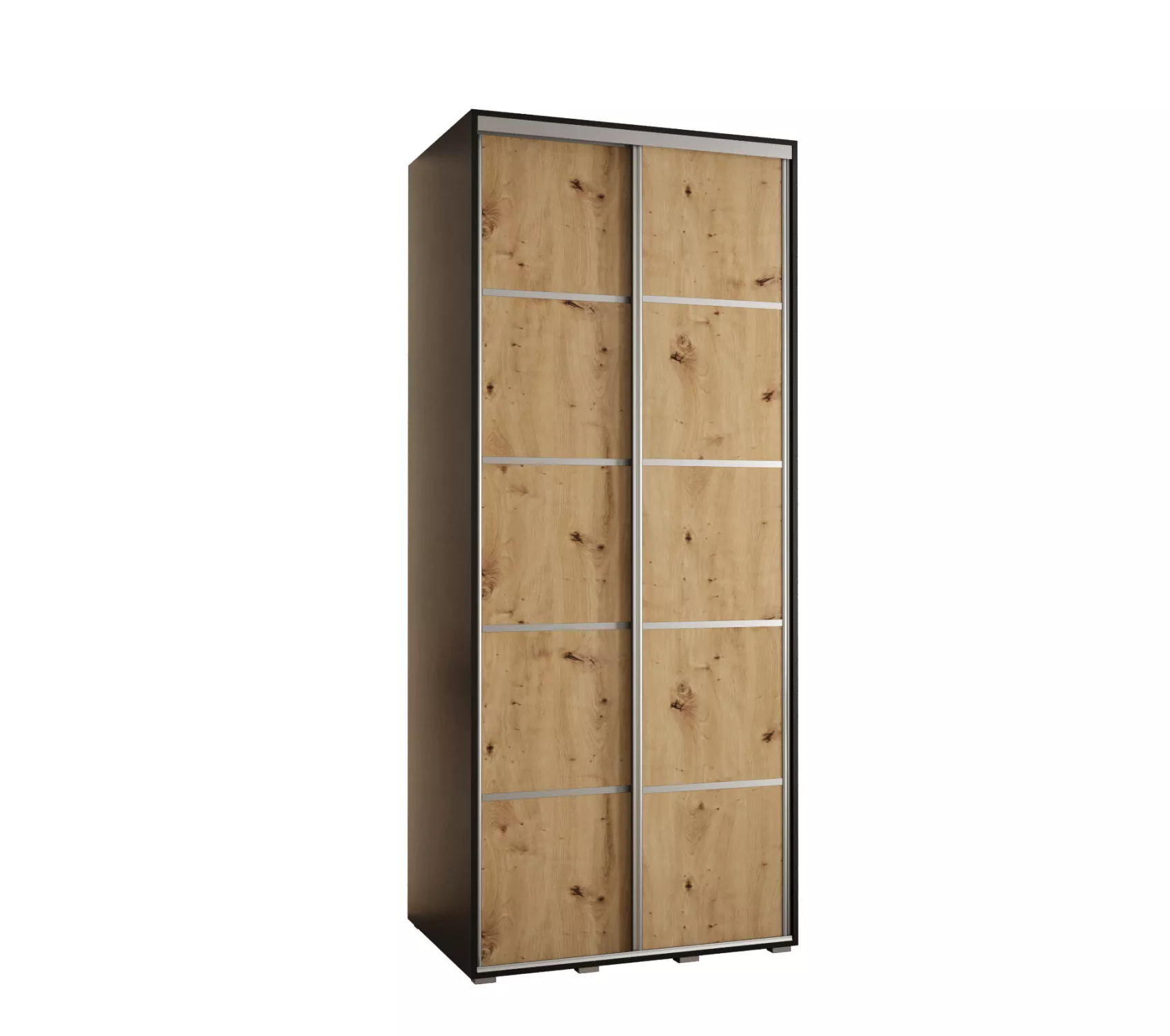 Šatní skříň ASIRI 4 - 100/45 cm, černá / dub artisan / stříbrná