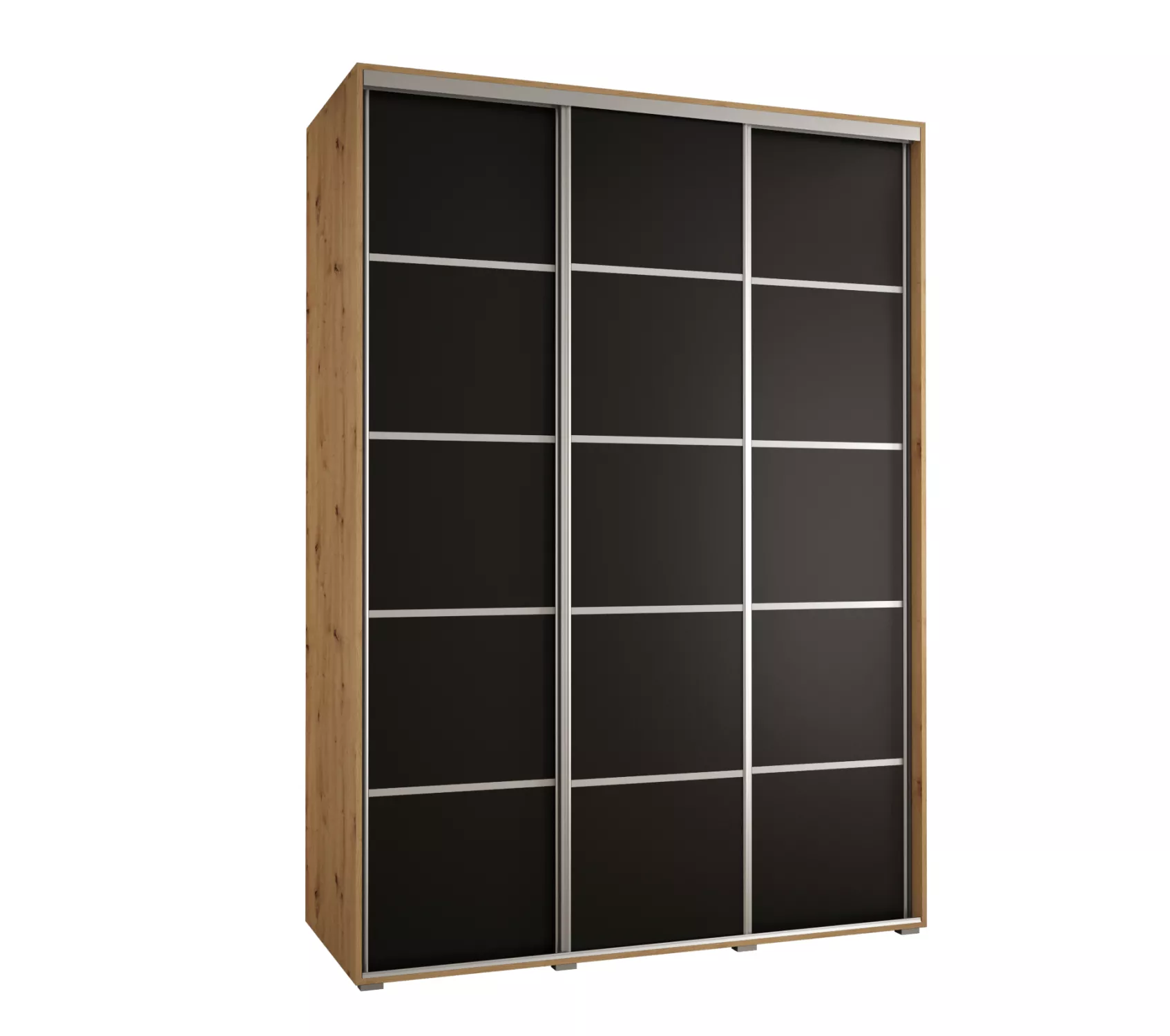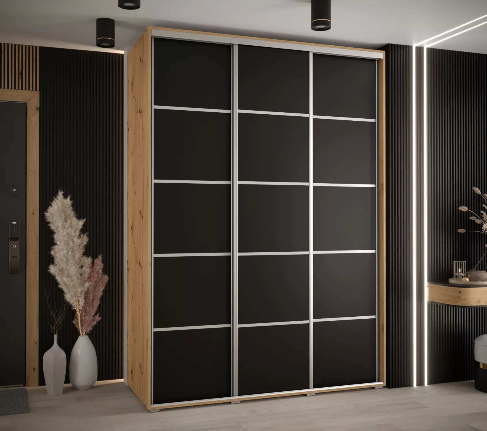 Šatní skříň ASIRI 4 - 170/45 cm, dub artisan / černá / stříbrná