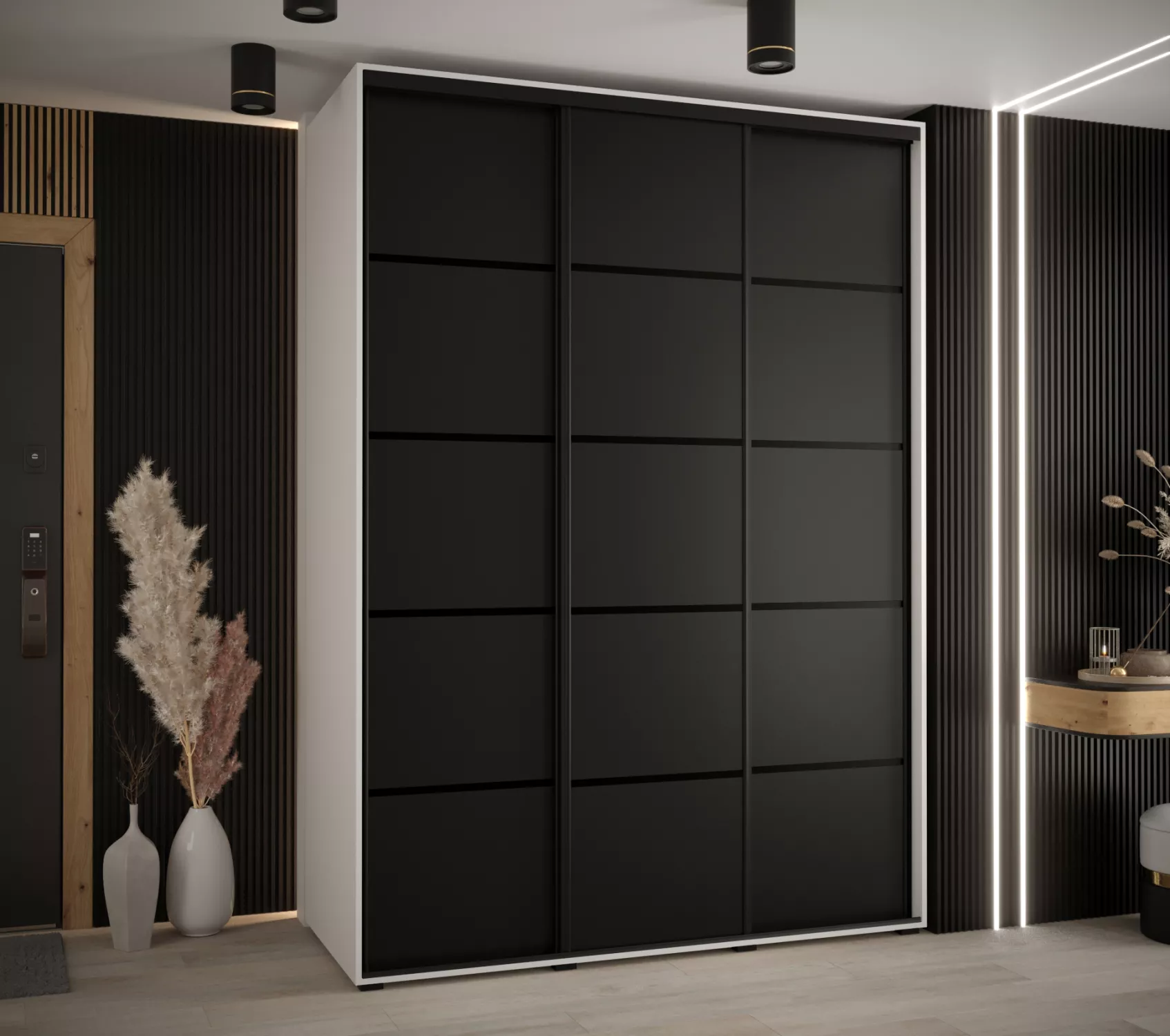 Šatní skříň ASIRI 4 - 180/45 cm, bílá / černá / černá