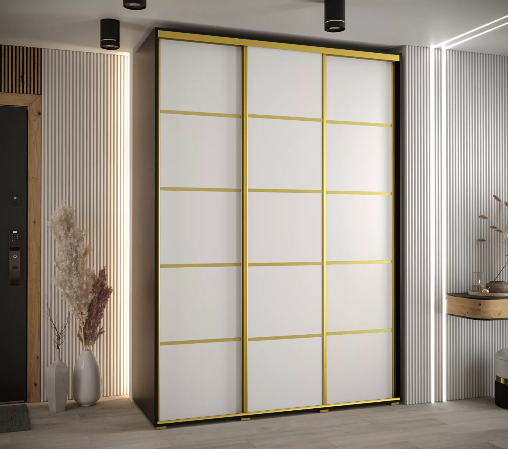 Šatní skříň ASIRI 4 - 180/45 cm, černá / bílá / zlatá