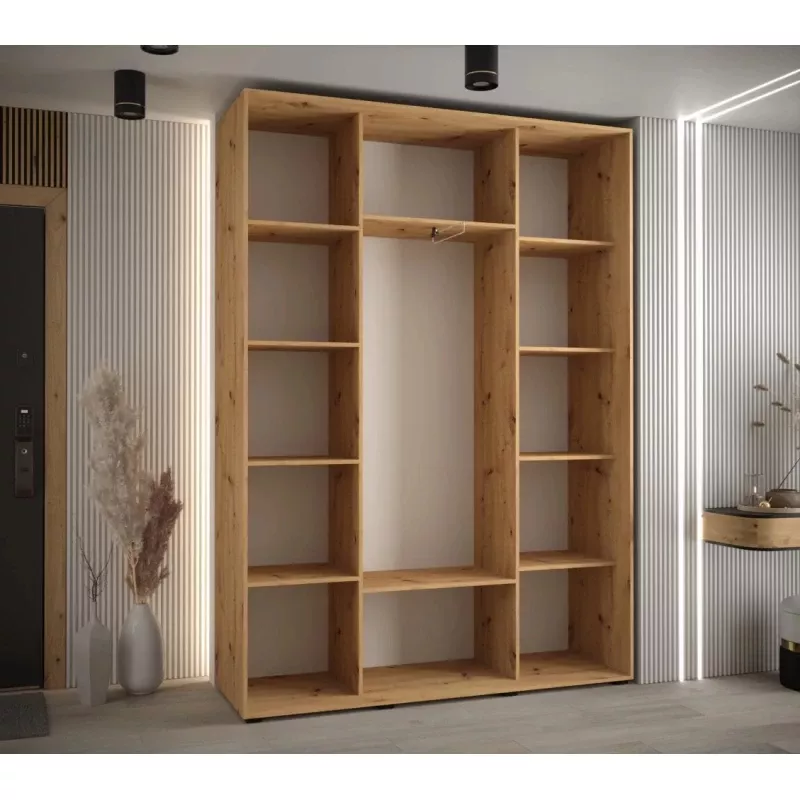 Šatní skříň ASIRI zaujme svým moderním designem a praktickými prvky. Šatní skříň má posuvné dveře, které se neotvírají do prostoru a ušetří tak spoustu místa.