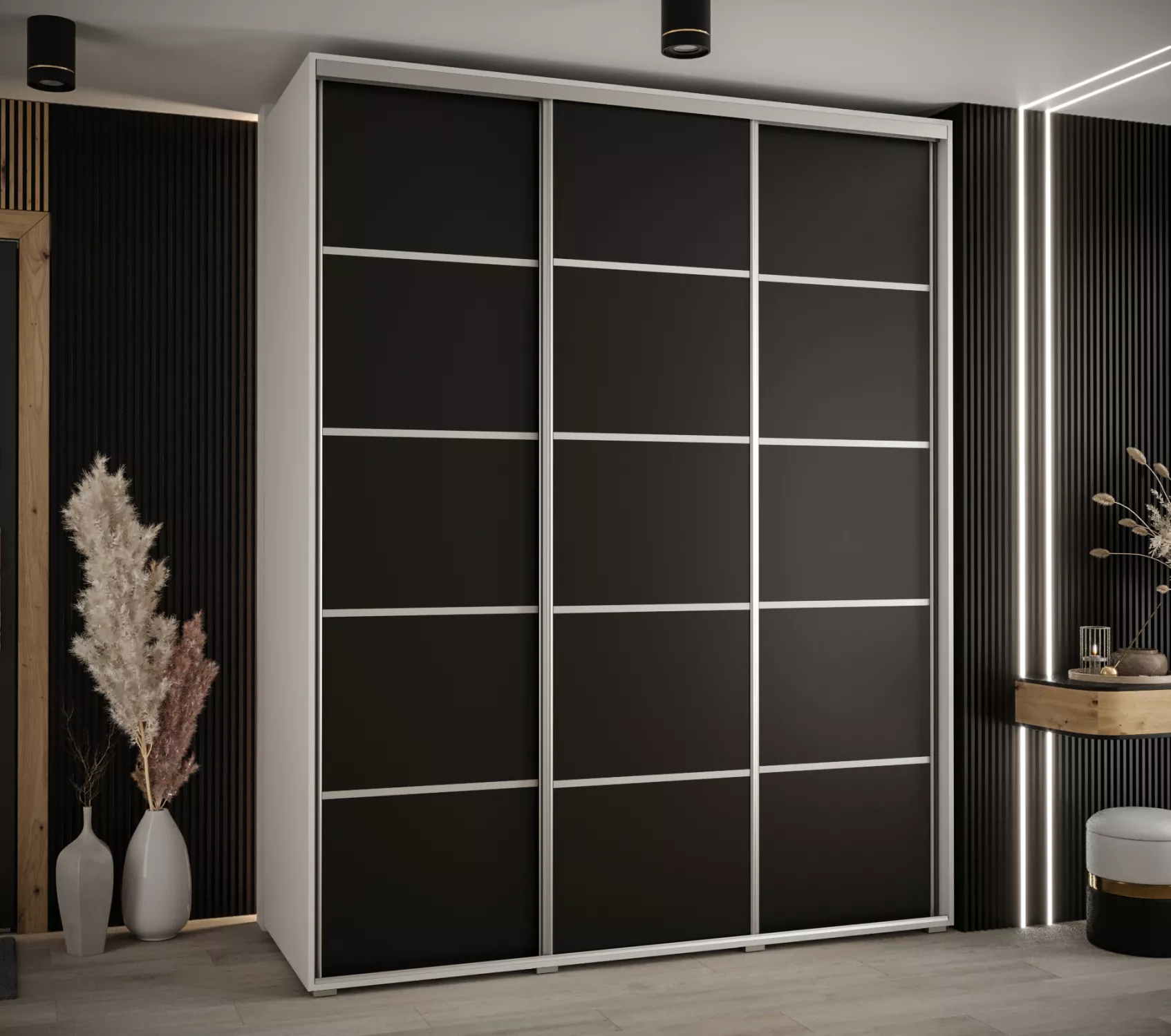 Šatní skříň ASIRI 4 - 200/45 cm, bílá / černá / stříbrná