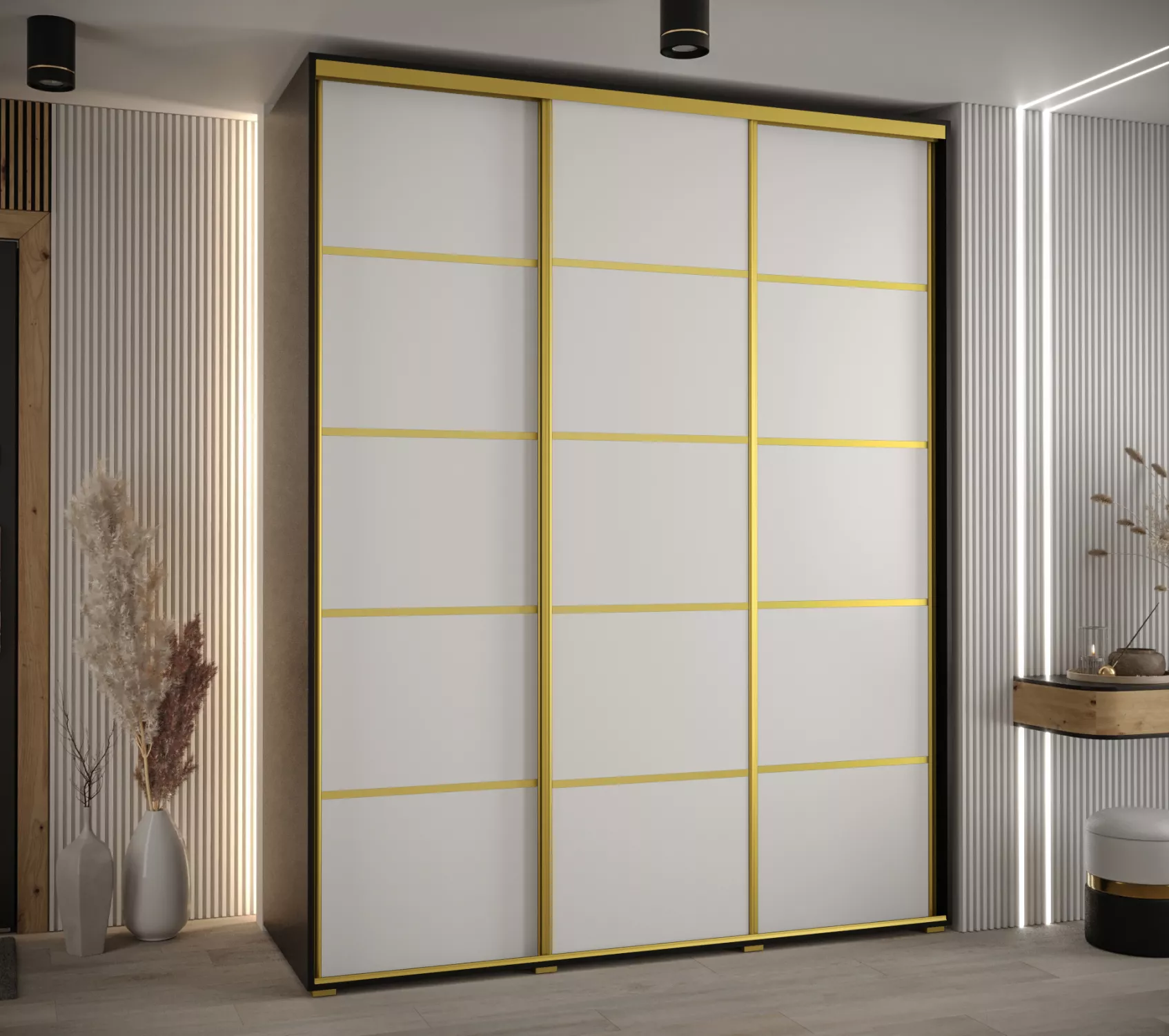 Šatní skříň ASIRI 4 - 200/45 cm, černá / bílá / zlatá