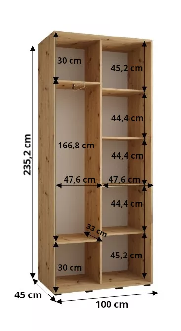 Šatní skříň se zrcadlem ASIRI zaujme svým moderním designem a praktickými prvky. Šatní skříň má posuvné dveře, které se neotvírají do prostoru a ušetří tak spoustu místa.