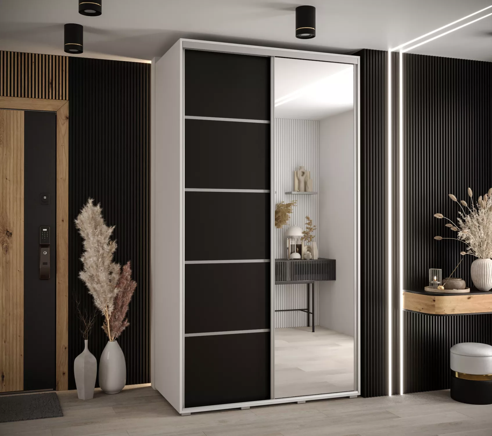 Šatní skříň ASIRI 5 - 140/45 cm, bílá / černá / stříbrná
