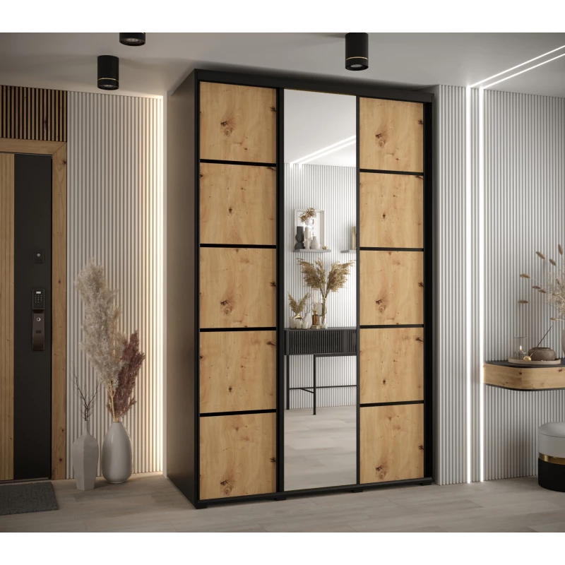 Šatní skříň ASIRI 5 - 150/45 cm, černá / dub artisan / černá