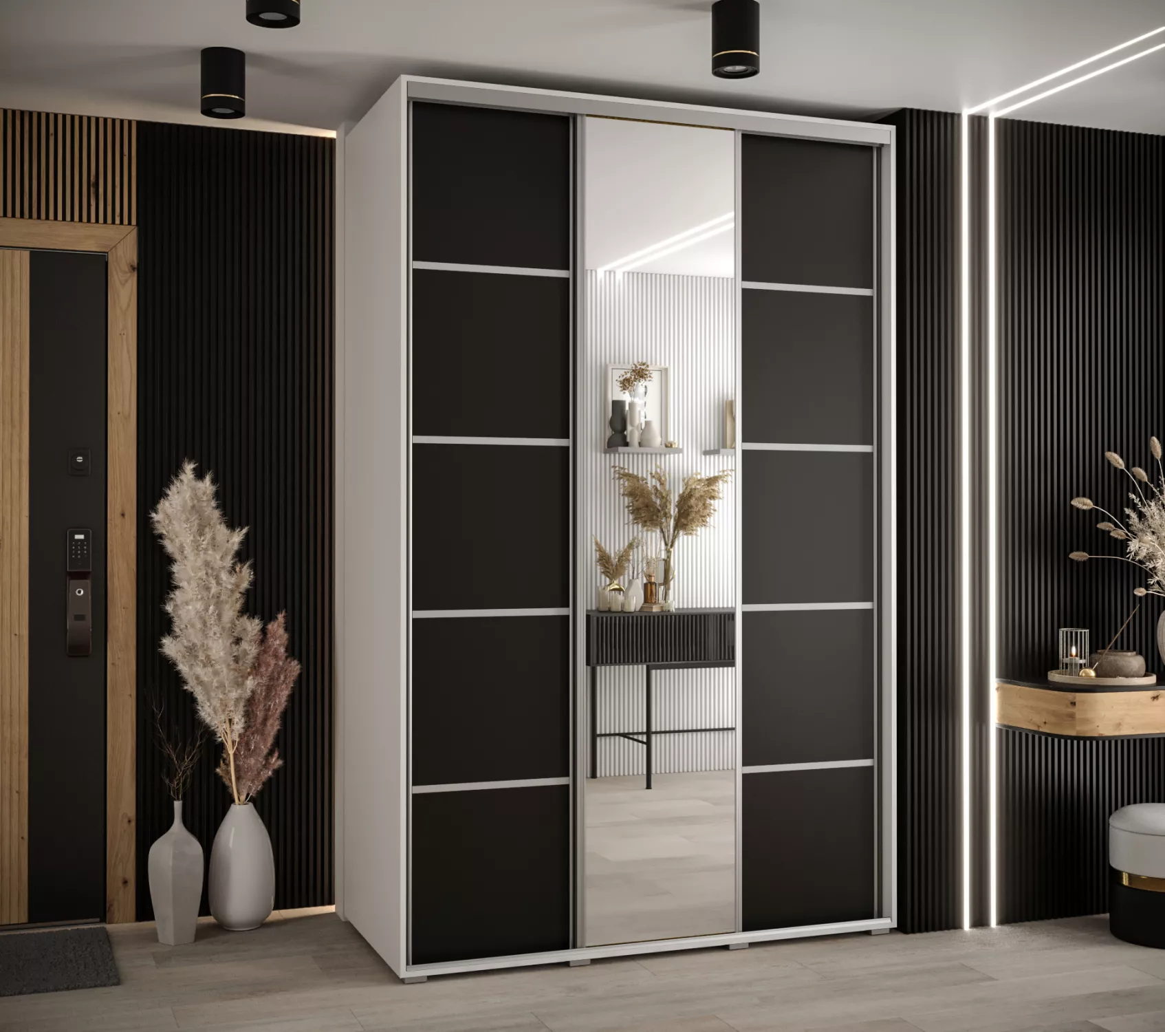 Šatní skříň ASIRI 5 - 160/45 cm, bílá / černá / stříbrná