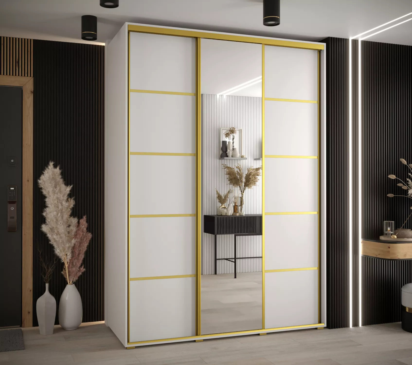 Šatní skříň ASIRI 5 - 170/45 cm, bílá / zlatá