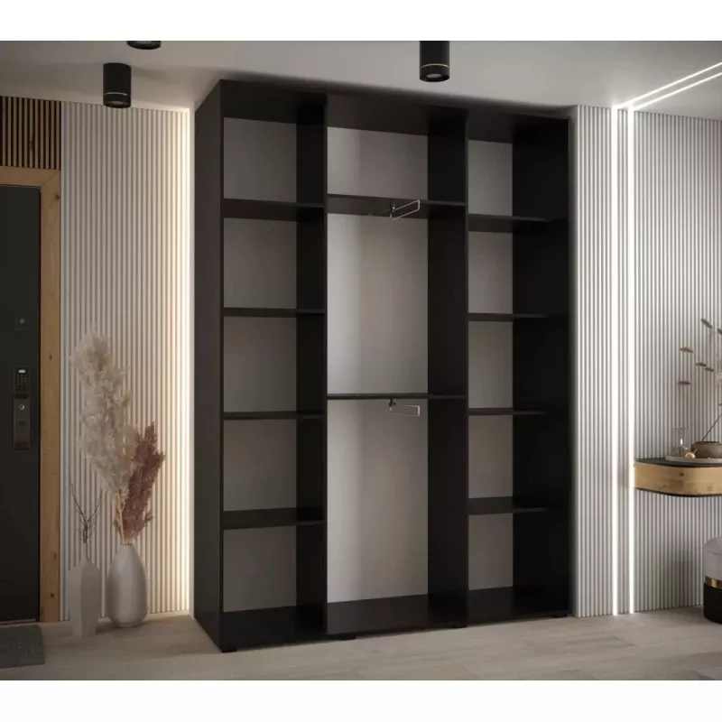 Šatní skříň ASIRI zaujme svým moderním designem a praktickými prvky. Šatní skříň má posuvné dveře, které se neotvírají do prostoru a ušetří tak spoustu místa.