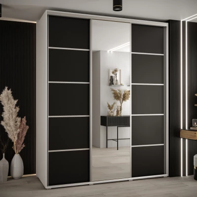 Šatní skříň ASIRI 5 - 190/45 cm, bílá / černá / stříbrná