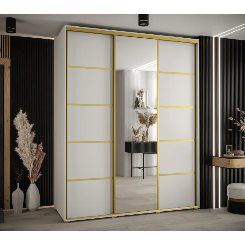 Šatní skříň ASIRI 5 - 190/45 cm, bílá / zlatá