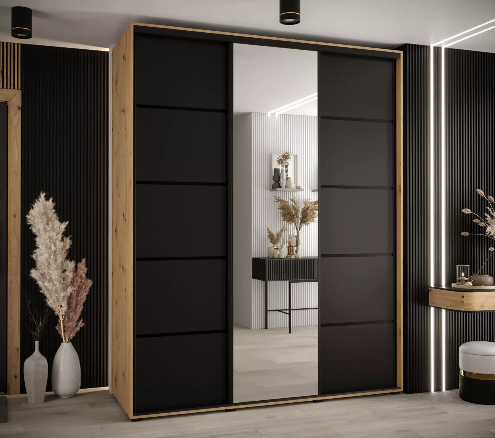 Šatní skříň ASIRI 5 - 190/45 cm, dub artisan / černá / černá