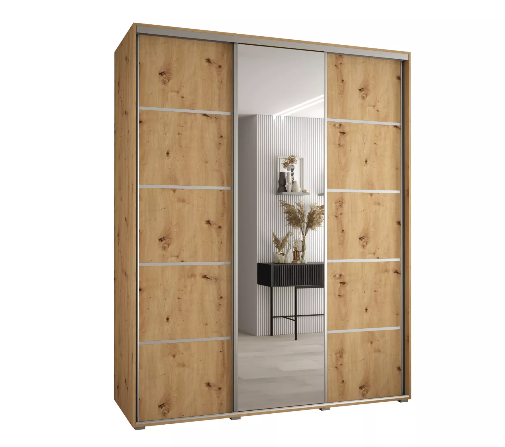 Šatní skříň ASIRI zaujme svým moderním designem a praktickými prvky. Šatní skříň má posuvné dveře, které se neotvírají do prostoru a ušetří tak spoustu místa.