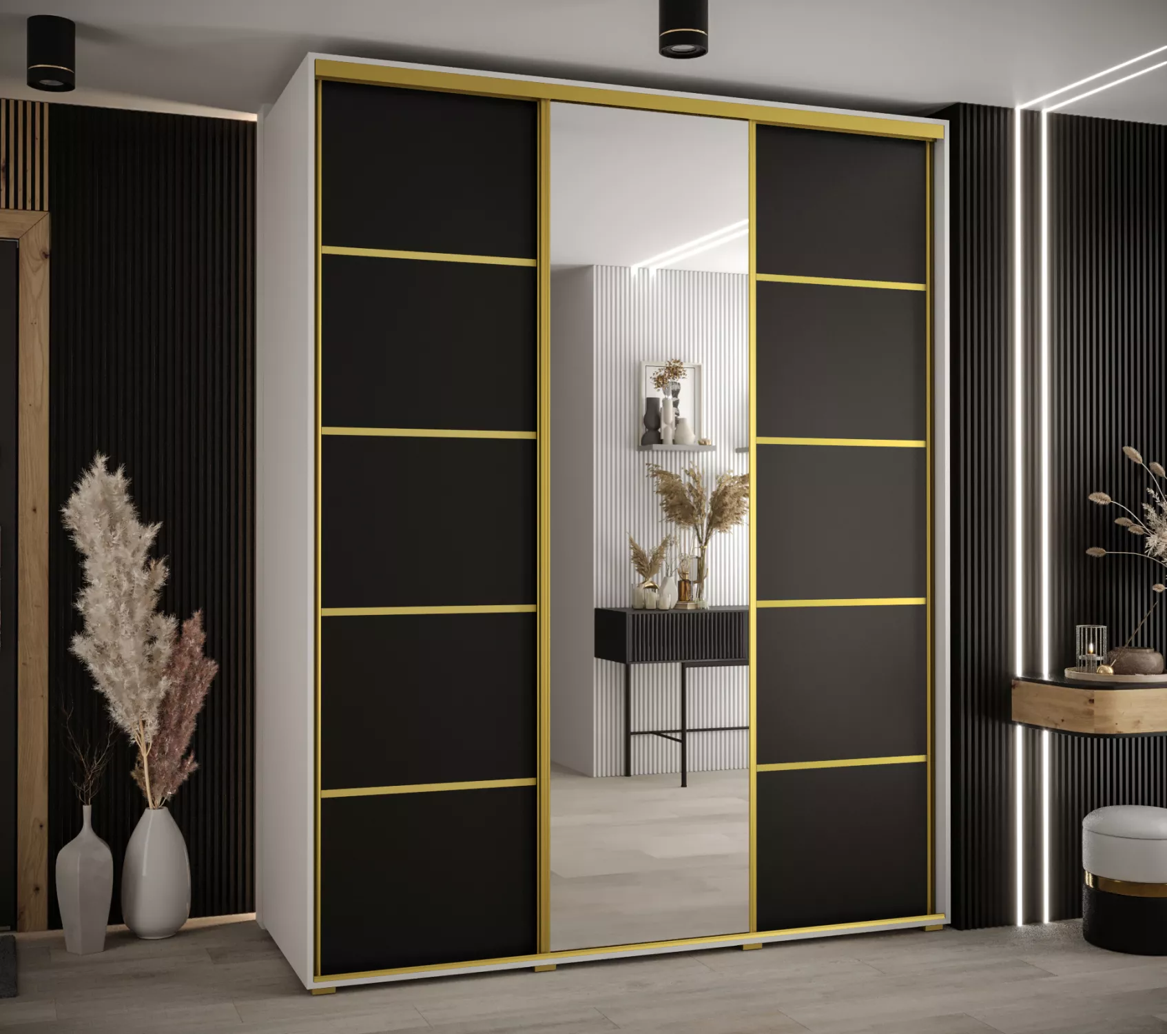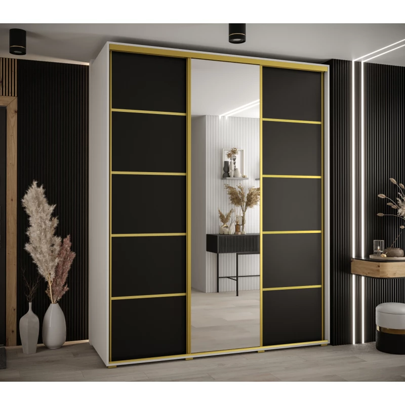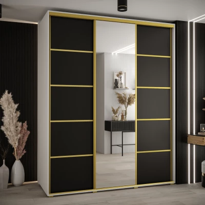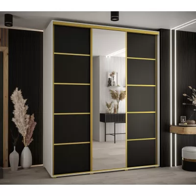 Šatní skříň ASIRI 5 - 200/45 cm, bílá / černá / zlatá