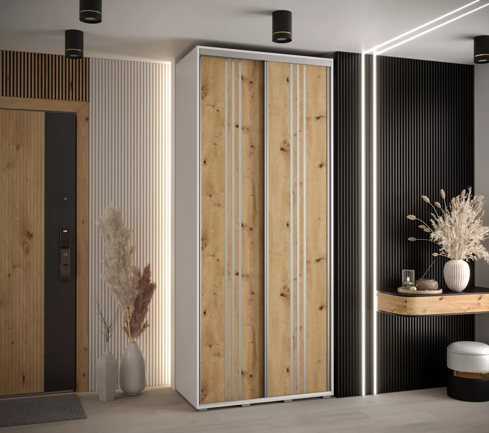 Šatní skříň ASIRI 6 - 100/45 cm, bílá / dub artisan / stříbrná