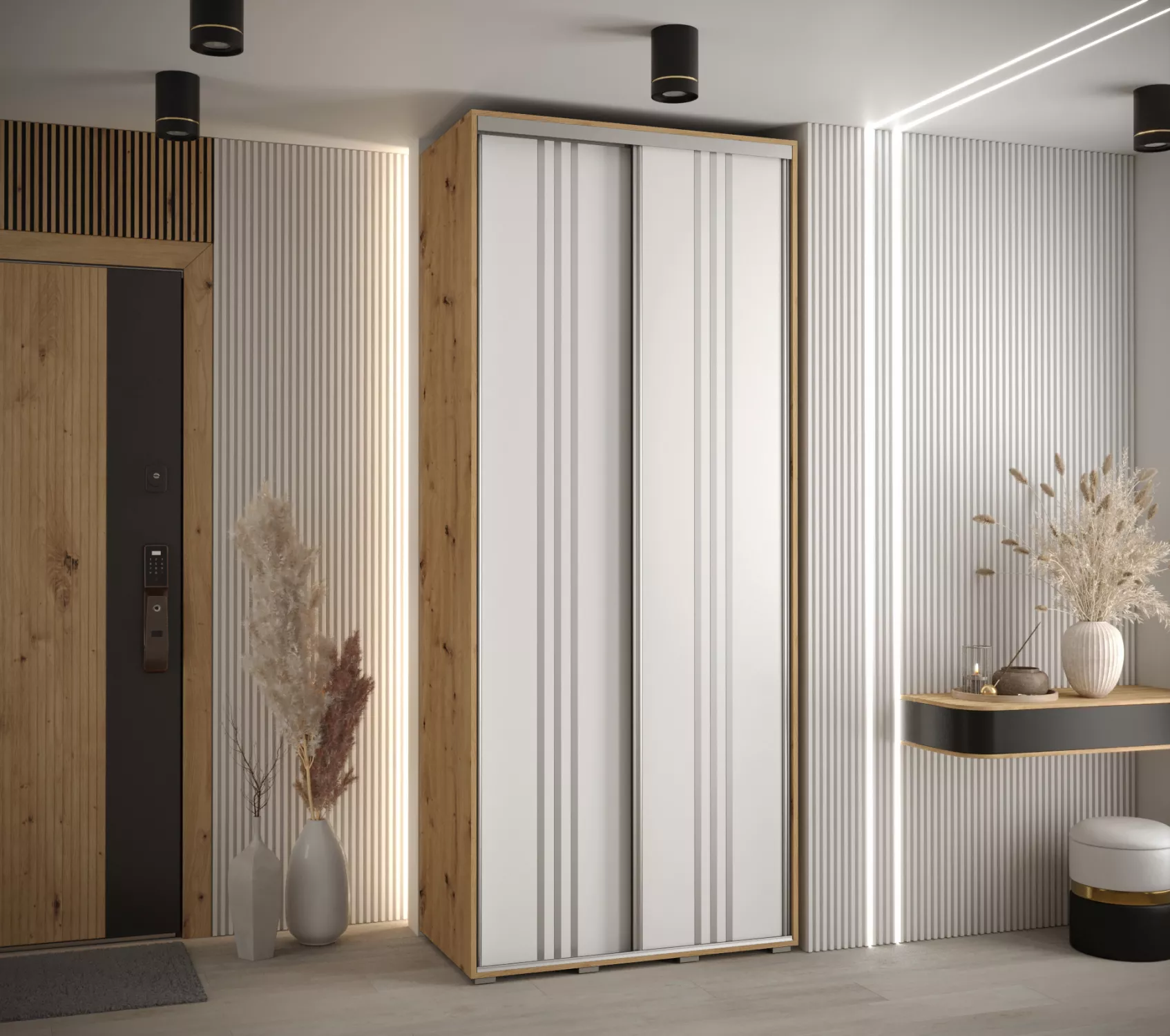 Šatní skříň ASIRI 6 - 100/45 cm, dub artisan / bílá / stříbrná