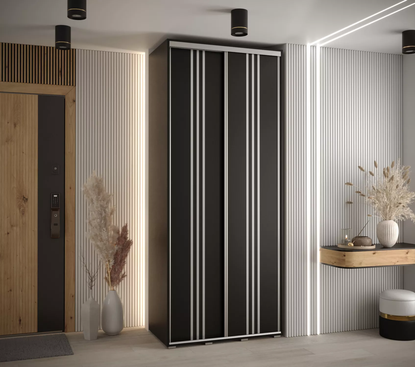 Šatní skříň ASIRI 6 - 110/45 cm, černá / stříbrná